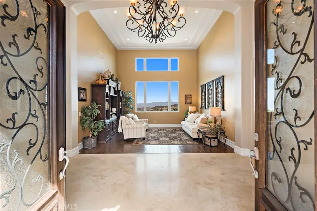 Welcome to 38150 Vía Huerta, a private, resort-style retreat nestled in the sought-after La Cresta community of Murrieta. Situated on 5 pristine acres with panoramic views of the mountains and city lights, this exceptional horse property offers the perfect blend of luxury, comfort, and functionality. From the moment you arrive, a gated entry and long, scenic driveway set the tone for the peaceful elegance that awaits. Inside, the home is filled with natural light and soaring ceilings that create a spacious, airy feel. Large picture windows frame breathtaking views and invite the outdoors in, while thoughtfully designed living spaces provide the ideal setting for both relaxation and entertaining. Inside, the oversized primary suite is a sanctuary of its own, complete with French doors opening directly to the pool and spa, and a spa-like bathroom with travertine finishes and dual vanities. A dedicated office and spacious guest bedrooms make this home as practical as it is beautiful. Step outside and you’ll find a true backyard oasis—an infinity-edge pool with waterfall features, a private spa, and a built-in BBQ area that’s perfect for gathering with family and friends. The covered patio and porch offer year-round comfort and are ideal for enjoying golden hour views over the valley. Equestrians will appreciate the 4-stall mare motel, corral, and miles of nearby horse trails. The property also includes a chicken coop, greenhouse, and an additional pad ready for fruit trees, a barn, or even a guest house. With 7 garage spaces, there’s no shortage of room for toys, tools, or a car collection. Whether you’re an entertainer, a hobby farmer, a horse lover, or simply looking for space to breathe, this one-of-a-kind estate offers it all.