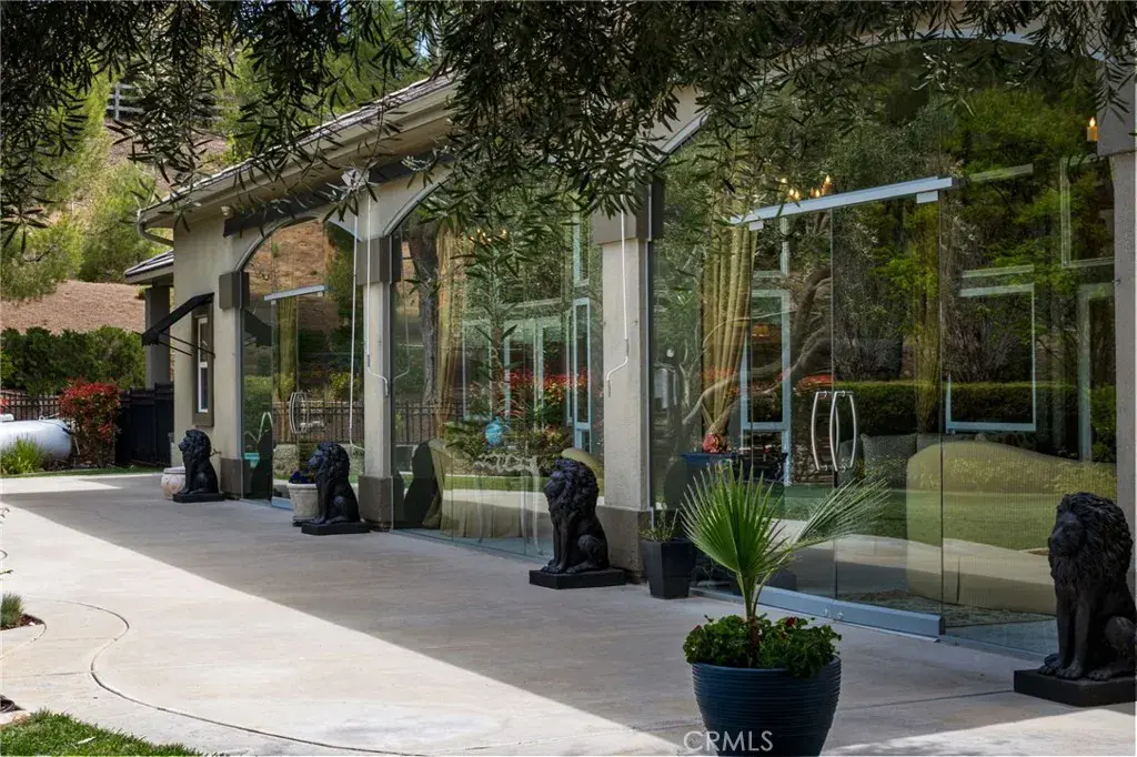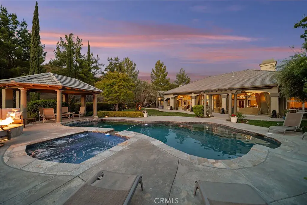 Situated just minutes from the front entry of La Cresta. This exquisite 5-acre estate offers the perfect blend of luxury, functionality, and privacy. Spanning approximately 6,800 square feet, the main residence is a testament to quality construction and thoughtful design. Soaring 12-foot ceilings, crown molding, and commercial-grade glass doors define the expansive interiors, which include 4 spacious bedrooms, 2 fireplaces, and an executive office ideal for working from home. The chef’s kitchen is equipped with a Bosch induction cooktop, KitchenAid refrigerator, and reverse osmosis system, making it as functional as it is elegant. The home also boasts 4 air conditioning units, an enclosed sunroom with A/C, and a paid solar system with battery backup for energy efficiency. Step outside into a backyard oasis featuring a pebble tech saltwater pool, outdoor fire pit, and lush landscaping framed by mature trees—including lemon, orange, pomegranate, pear, and apple.
