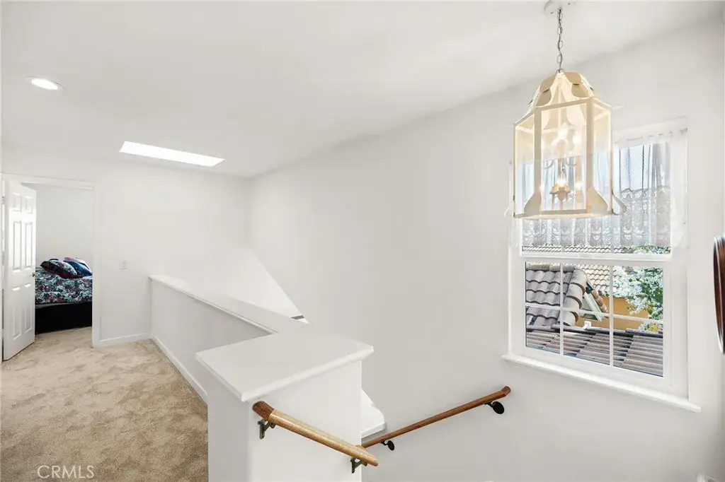 This thoughtfully designed residence features an upstairs primary suite with vaulted ceilings, a large walk-in closet, and a bathroom with separate tub and shower. Wide staircase with railings. Upstairs, brand-new carpet graces the stairs and all second-floor rooms, where you’ll find two additional bedrooms ideal for family or guests.