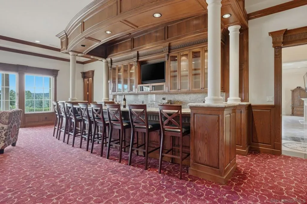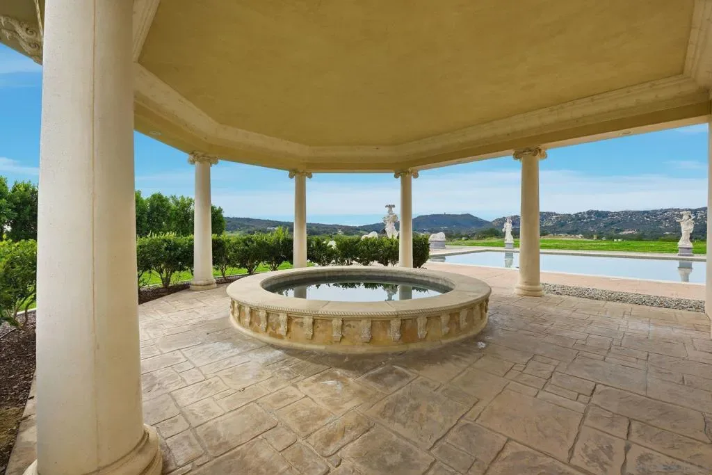 Luxury Live Auction! Bidding to start from $5,000,000! One of a kind Roman-inspired single-story estate set behind the guard-gated community of Meadow Oaks in La Cresta. Masterfully crafted, this irreplaceable residence blends old-world artistry with a warmth & livability rarely found at this scale. Soaring ceilings, grand arched windows, & hand-carved imported stone & wood details create timeless elegance that still feels inviting & comfortable. The approximately 10,784 sqft layout offers 5 ensuite bedrooms & 8 bathrooms, anchored by a 1,500 sqft owner’s suite with fireplace, spa-inspired bath, private gym, dedicated laundry, & direct access to the resort-style pool & oversized spa. Designed for entertaining, the estate includes a chef’s kitchen with La Cornue range, full-service bar & lounge, ballroom-style great room, private library, & home theater. Recent improvements totaling over $350,000 enhance both beauty and functionality, including extensive landscaping with approximately 450 Ficus Nitida trees for privacy, a completely redesigned irrigation system, new soil & grass, artificial turf in the front yard, river rock hardscaping, upgraded pond & well pumps, enhanced pool filtration, & an automated pool cleaning system. Interior upgrades include natural travertine marble flooring with decorative metallic inlays in multiple living areas. Set on nearly 5 acres of flat, usable land, the backyard opens to rolling green hills offering exceptional privacy & serenity. A private stocked pond & oversized garage ideal for car enthusiasts complete this truly bespoke estate.