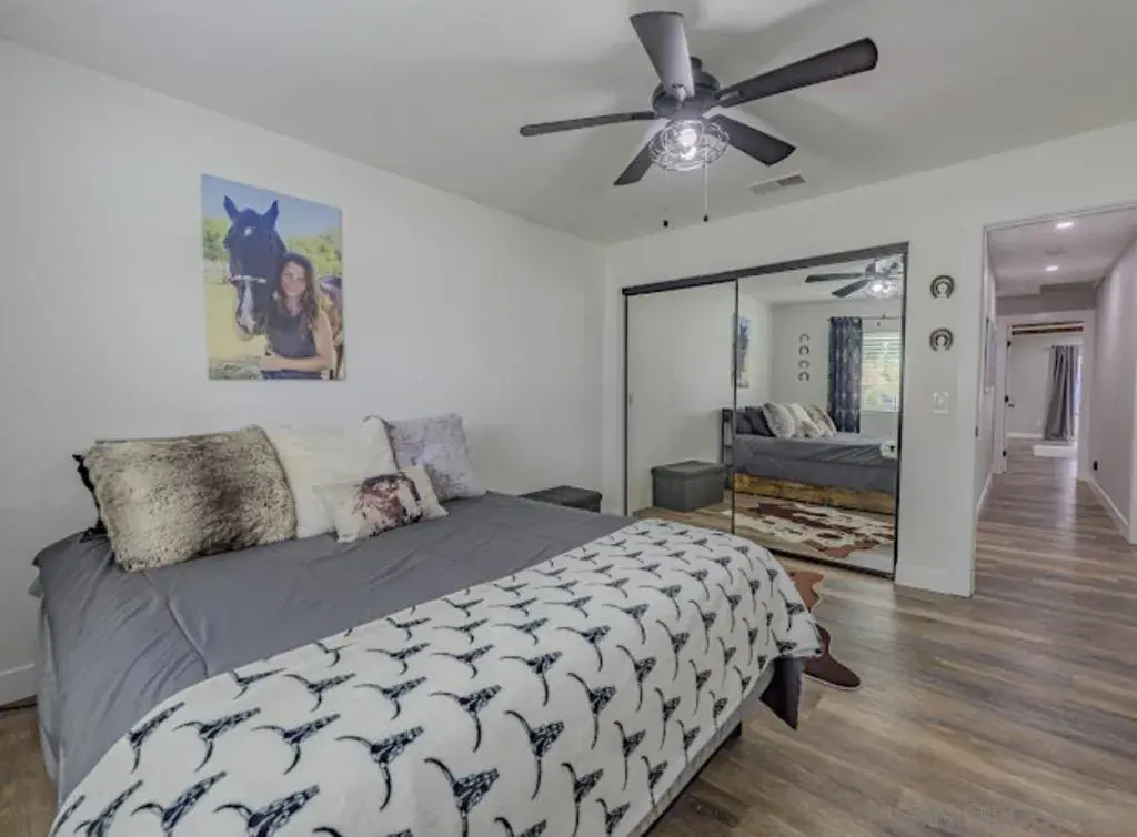 Modern Farmhouse Equestrian Estate | 1.68 Acres | No HOA Gated dual-home property offering resort-style living with exceptional flexibility for horse owners, multi-generational living, or income-producing RV storage. Main Home: Fully remodeled 2,360 SF 4BR/2.5BA featuring a metal roof, new HVAC, insulation, ducting, tankless water heater, whole-house filtration/softener, & energy-efficient windows & sliders. Chef’s kitchen with quartz island, microwave drawer, farmhouse sink, & custom range hood. Massive solar system (30 paid panels + 18 panels with 2 batteries, approx. $180/mo). Two-car garage plus detached oversized third-car garage/workshop (30×16) with epoxy floors, 10×8 storage shed, swing set, & trampoline. Resort Backyard: Beach-entry pool with swim jets, dual slides, waterfall/grotto, fire feature, pergola, BBQ gas hookup, & pool solar. Equestrian or RV Income Use: The property is currently configured for organized RV & trailer storage with active rental income, including a dedicated gravel pad w/ 50/30 amp electrical hookups, sewer, & water. Originally designed for horses, the layout can be easily converted back to equestrian use, featuring a 4-stall mare motel with breezeway, power, lighting, automatic waterers, & a vinyl-fenced arena. Ideal for buyers seeking income, horses, or a hybrid setup. Detached ADU: Permitted 1,188 SF 3BR/2BA with option for a private 1BR suite with kitchenette & separate entry—ideal for extended family, caretakers, or rental income. Private well & septic with low monthly utility costs. Fully fenced acreage near Temecula Wine Country. RV Ready: Dedicated gravel pad with 50/30 amp hookups, sewer, and water. Additional Features • Utilities: Private well and septic keep costs remarkably low (approx. $20/mo for water!). • Landscaping: Mature orchard (Apple, Peach, Lemon, Apricot), raised garden beds, and premium vinyl fencing. Located close to Temecula Wine Country, top-rated schools, and riding trails. This income-generating gem offers luxury, privacy, and unmatched utility in one package!