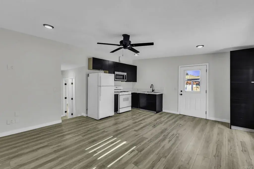 Beautifully renovated 2-bedroom, 1-bath unit in the heart of National City, freshly painted and ready for immediate move-in. This charming home features a modern open-concept kitchen, a renovated bathroom, a mini-split system for cooling, and a private patio. The primary bedroom includes a walk-in closet, and both bedrooms are on lower level, creating a unique split-level layout. Please note that access to the unit requires stairs and is not wheelchair accessible. Tenant is responsible for all utilities. Parking is street only; the driveway is reserved exclusively for the front/main house. The entry area and front patio are shared common areas with the other units on the property. No pets allowed. Conveniently located near freeways 5 and 54, shopping centers, schools, and much more. A great opportunity to live in a fully refreshed unit in a central, accessible neighborhood.