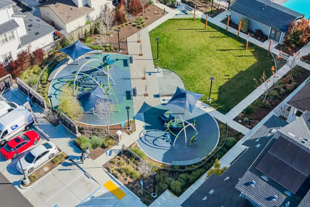 BEST LOT LOCATION! Stunning 1 YEAR NEW unique CORNER LOT Single Family w/ 3 UNOBSTRUCTED SIDES, PARK & MOUNTAIN VIEWS, and ABUNDANT NATURAL SUNLIGHT at a prime location in a sought-after community. Luxurious experience in this 3b3.5b 2,201 SqFt beautiful home w/ 3 spacious SUITES. The open layout of the majestic main level features a gourmet kitchen w/ extra long kitchen island, beautiful cabinets/countertops, high-end s/s appliances, and pantry. Bright living and dining areas flow seamlessly to a private large balcony -perfect for effortless indoor-outdoor entertaining. Spacious master suite w/ double-sink vanity, tub & shower, and a large walk-in closet plus extra storage. Spacious and sun-filled 1b1b suite on the 1st floor for maximum flexibility. Upgraded hard flooring and recessed lights throughout. Central heating & AC w/ dual zones, owned solar system. Two-car garage w/ extra storage area, plus plenty of parking spots in the community. Well-maintained vegetable & fruit garden in the sun-filled PRIVATE YARD. Community park right outside. Community provides amenities: clubhouse, pool, playground, BBQ area, etc. Unbeatable convenience -close to tech companies, e.g. Meta, Tesla, Lucid, Logitec, etc. Easy access to the Dumbarton Bridge, Hwy 880, etc.