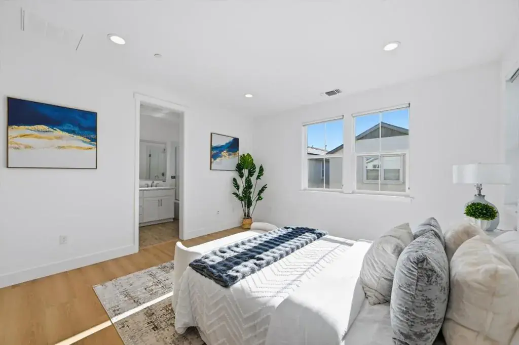 Architectural masterpiece showcasing modern luxury with clean lines and light-filled volumes. The open-concept design centers on a gourmet kitchen with waterfall island and professional-grade appliances, seamlessly connecting to a grand living area with soaring ceilings and gallery-style walls. Wide-plank flooring, a refined monochromatic palette, recessed lighting, and custom millwork create a cohesive, elevated atmosphere throughout. The private primary suite offers terrace access and a spa-inspired ensuite with freestanding soaking tub and dual-head rainfall shower. Floor-to-ceiling glass sliders open to a resort-style outdoor retreat featuring a covered alfresco lounge, swimming pool, and manicured grounds. Smart-home technology enhances effortless indoor-outdoor living. Secluded guest quarters provide privacy, while the expansive backyard is ideal for entertaining and sunset views. Located within an exclusive planned community offering privacy and elite neighborhood standards.