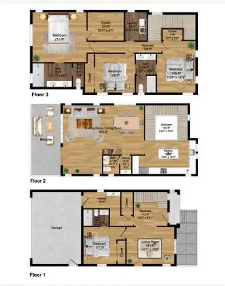3 Full Bathrooms, 1 Half Bathroom