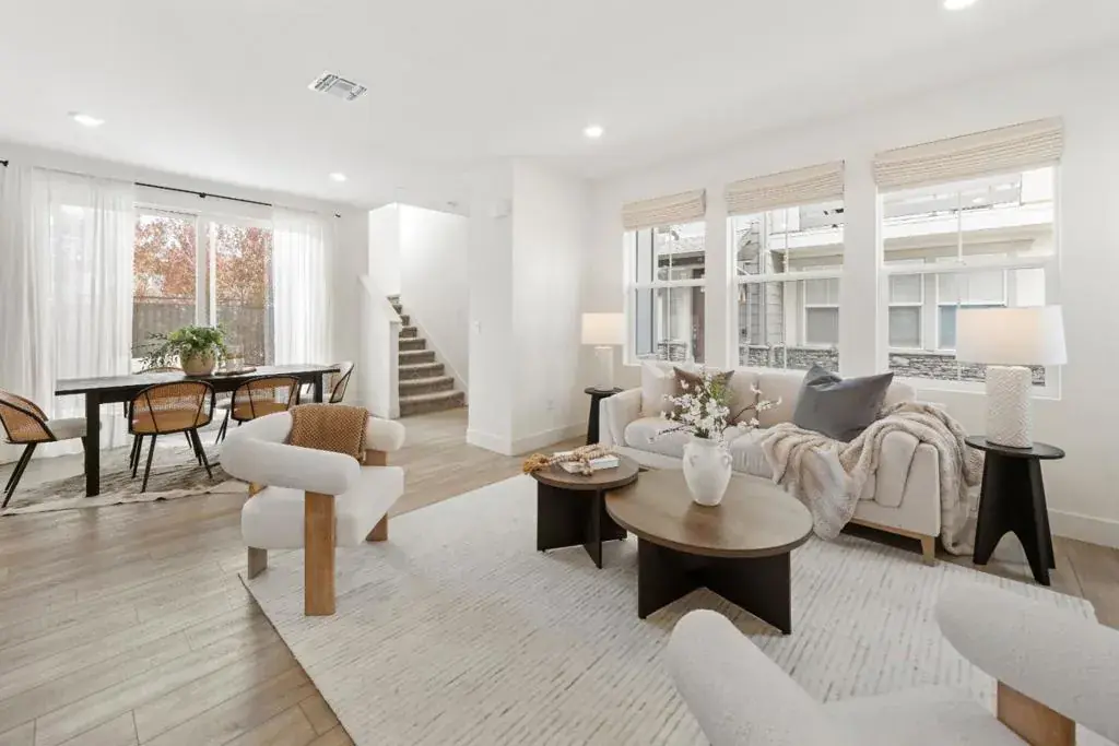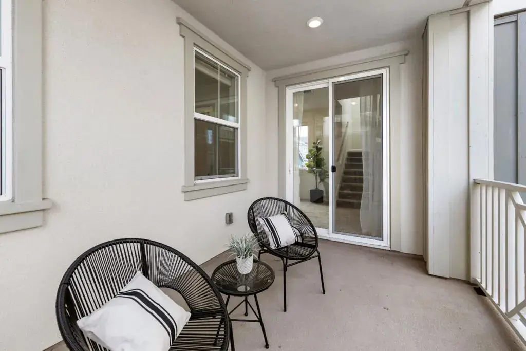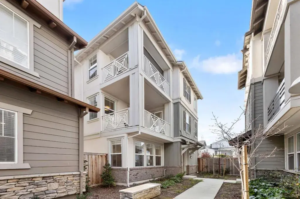 Absolutely stunning and rare location and size! Built in 2020 this Lennar home features 2,478 sqft of light filled living space on an rare extra large lot at 2,803 sqft. Situated adjacent to the community pool and club house allows for a spacious backyard and views of the pool and community. The backyard has been custom upgraded to feature pavers, lush landscaping, sprinklers and multiple seating areas. Step inside and you are warmly greeted into the gracious common area. An open concept kitchen, dining and living area with custom electric blinds, high ceilings and sliding doors to the backyard for seamless entertaining. The second floor features a secondary living space – this loft is ideal as a cozy family room, reading room or children’s play area. 3 bedrooms, 2 bathrooms and two balconies on this floor provide ample space for bedrooms and a home office. The third level is a private primary retreat with a spa like bathroom, expansive walk in closet and multiple outdoor spaces. This home leaves little to be desired. Minutes to the 84, plazas and amenities. The community itself features ample recreation spaces including a community playground, pool and club house – all impeccably maintained.