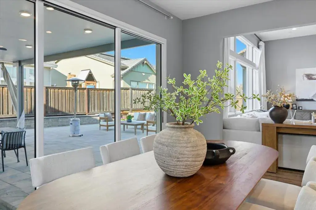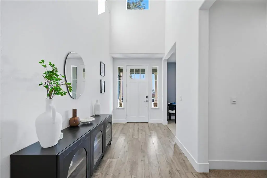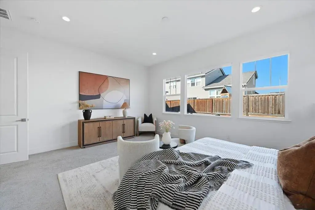 Fabulous new construction built in 2022, offering modern luxury living. This thoughtfully designed 4-bedroom home features a dedicated office, oversized sunlit loft, and 4.5 bathrooms. The grand entry welcomes you with a dramatic 19-foot soaring ceiling. The open-concept living room with 12-foot ceiling seamlessly connects the living, dining, and gourmet kitchen areas, with direct access to the backyard patio. The gourmet kitchen boasts a large island with quartz countertops, SS appliances, a 6-burner gas range, and a spacious walk-in pantry. The main level offers a master bedroom, a private suite, and a guest bedroom. The primary bath features a spa-like bathroom with soaking tub, walk-in shower, and walk-in closet. Upstairs features an oversized loft filled with natural light, one bedroom, and a full bathroom. Additional highlights include owned solar system with NEM 2.0, tankless water heater, central HVAC, and a spacious finished 2-car garage. The backyard is perfect for enjoying California living, featuring a built-in BBQ with center island, artificial turf, and a covered patio. Ideally located with a short commute to Tesla and Meta, and close to parks, schools, and shopping centers. A rare opportunity to own a nearly new, well-designed home in a prime Newark location.