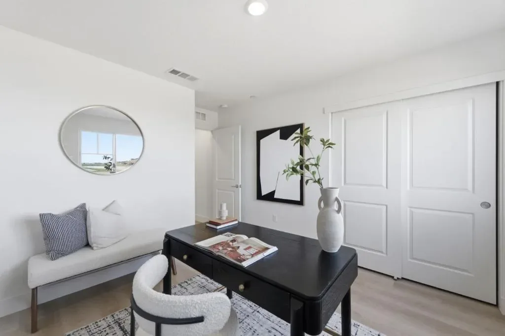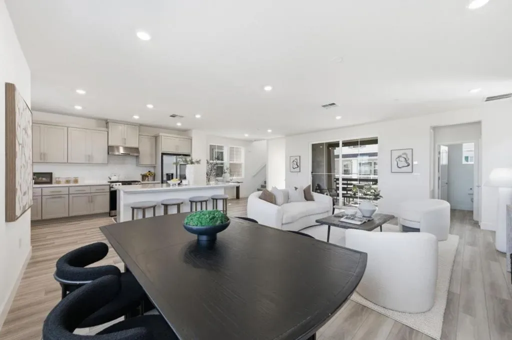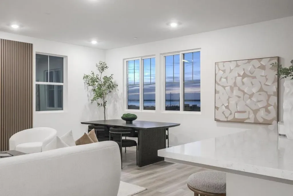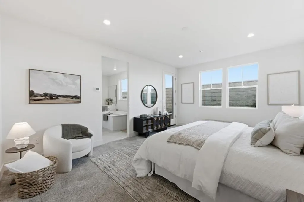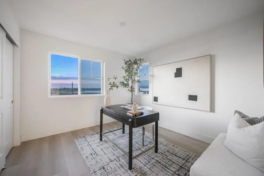 Positioned on a premium lot with no rear neighbors, this 2024 Bridgeway residence offers maximum privacy and incredible views that are a rare find within the community. The layout features dual primary suites, providing a versatile floor plan perfect for various living arrangements or a high-value rental. The home centers on a bright, open living area with natural light. The gourmet kitchen features a gas stove, designer cabinetry, premium quartz counters, and a walk-in pantry. Modern, light LVP flooring spans the upper levels, with the 2nd floor opening to a private balcony for relaxation and entertaining. In the dining area, large windows frame breathtaking sunset views. Functional upgrades include a built-in workspace, energy-efficient construction, a finished epoxy garage floor and solar. Step outside to a curated oasis with a private yard, premium pavers, and an architectural retainer wall. Resort-style living is at your doorstep, with a playground and trail entrance down the street. Residents enjoy a short walk to the dog park and clubhouse, featuring a pool and BBQ areas, while nature enthusiasts will appreciate the nearby wildlife refuge trails. Commuting is effortless to tech hubs with easy access to the Dumbarton Bridge and I-880.