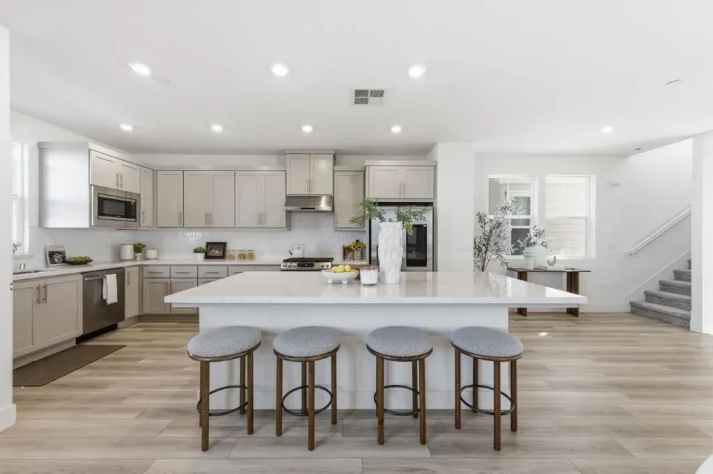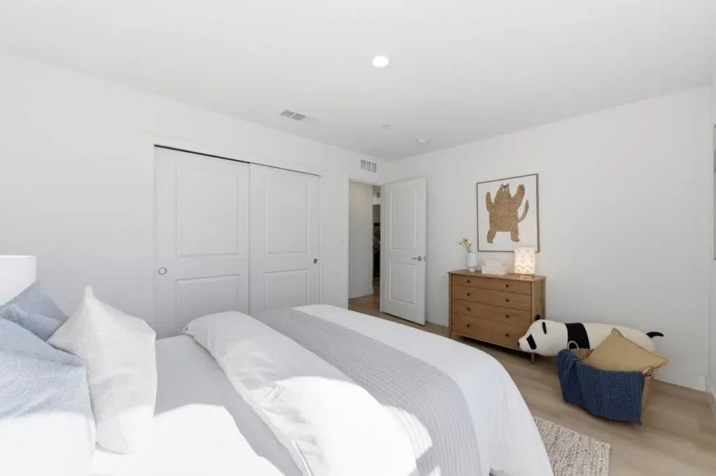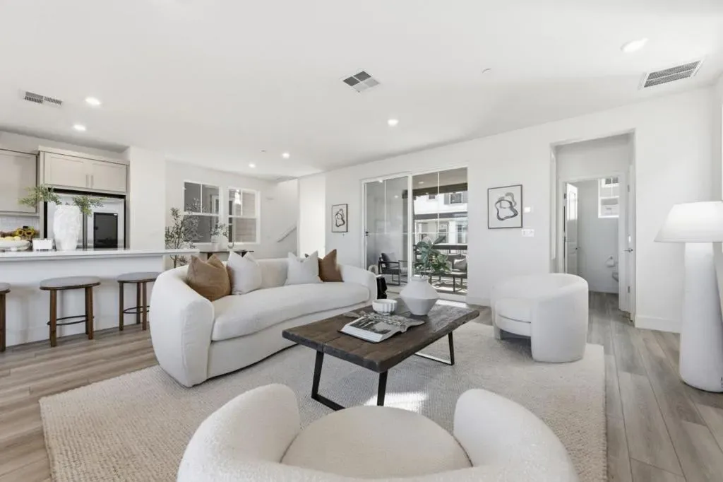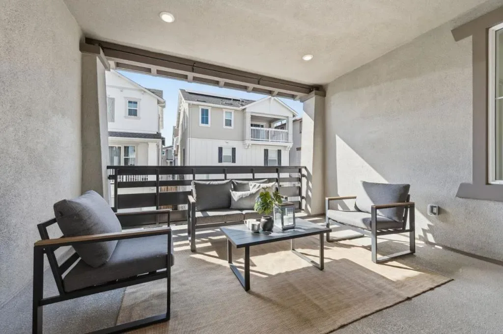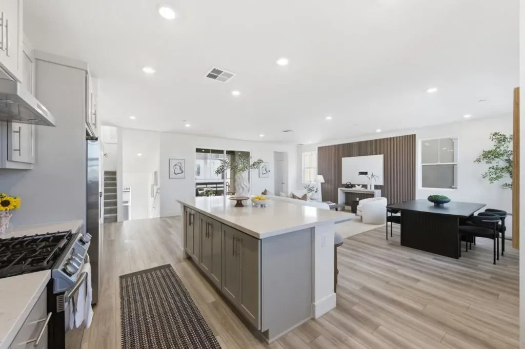 Positioned on a premium lot with no rear neighbors, this 2024 Bridgeway residence offers maximum privacy and incredible views that are a rare find within the community. The layout features dual primary suites, providing a versatile floor plan perfect for various living arrangements or a high-value rental. The home centers on a bright, open living area with natural light. The gourmet kitchen features a gas stove, designer cabinetry, premium quartz counters, and a walk-in pantry. Modern, light LVP flooring spans the upper levels, with the 2nd floor opening to a private balcony for relaxation and entertaining. In the dining area, large windows frame breathtaking sunset views. Functional upgrades include a built-in workspace, energy-efficient construction, a finished epoxy garage floor and solar. Step outside to a curated oasis with a private yard, premium pavers, and an architectural retainer wall. Resort-style living is at your doorstep, with a playground and trail entrance down the street. Residents enjoy a short walk to the dog park and clubhouse, featuring a pool and BBQ areas, while nature enthusiasts will appreciate the nearby wildlife refuge trails. Commuting is effortless to tech hubs with easy access to the Dumbarton Bridge and I-880.