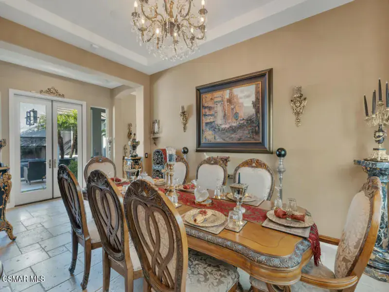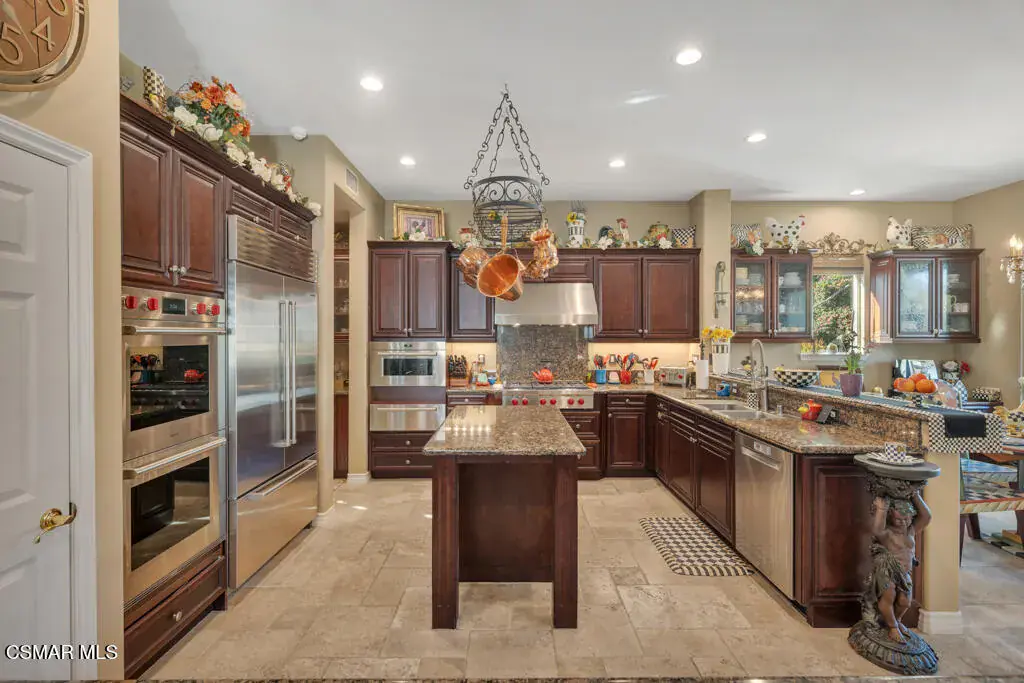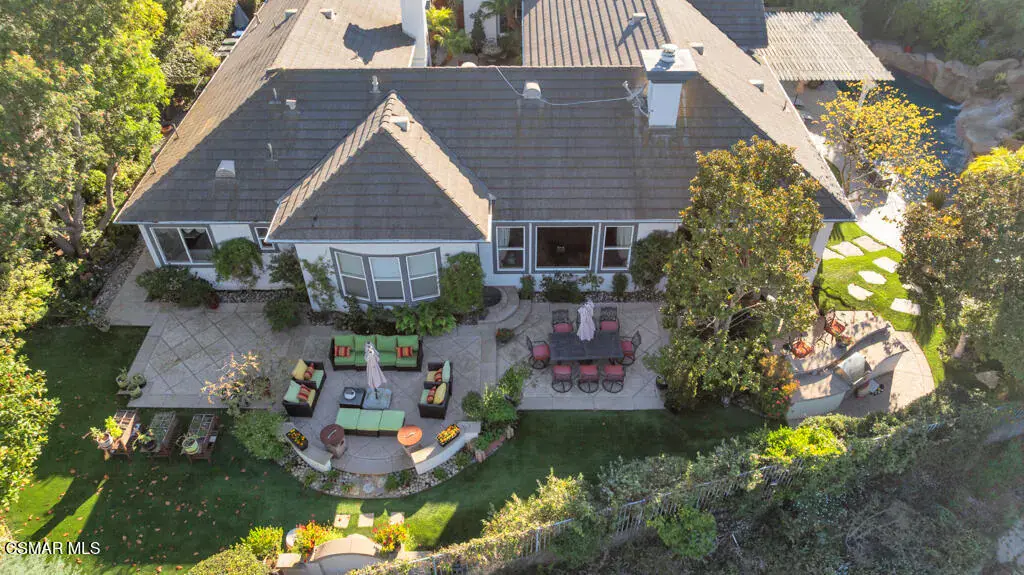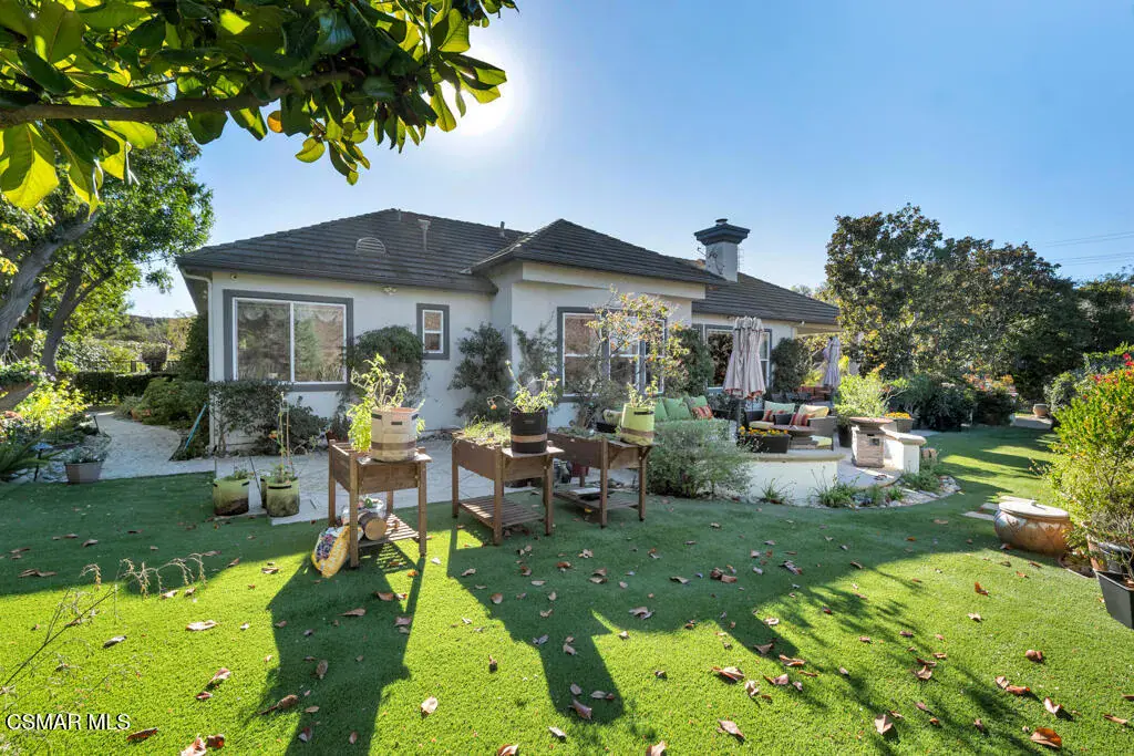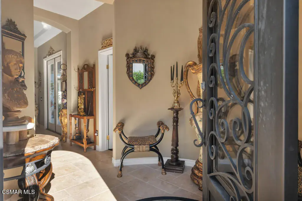 Welcome to 103 Via Sandra, a beautifully upgraded 4-bedroom + Office, 4-bathroom single-story Mediterranean-style home located in a private gated cul-de-sac in the sought-after Dos Vientos community of Newbury Park. This approximately 3,400 sq ft residence showcases stunning mountain views, soaring ceilings, LED lighting throughout, a Sonos sound system, and a flexible open layout designed for modern comfort. The chef’s kitchen features top-of-the-line Wolf appliances, granite countertops, a center island, and custom cabinetry. A luxurious primary suite includes enough space for a sitting area, spa-inspired bath, and spacious walk-in closet. Additional highlights include a center courtyard with a fireplace, prestigious home office, a spacious laundry room, 2-car tandem garage, and exterior security camera system. The private backyard is perfect for entertaining with turf landscaping in the front and backyard, a covered patio, built-in BBQ, and stunning pool and spa with newly resurfaced rock waterfall and slide. A whole-home Generac generator adds reliable backup power, while the location offers convenient access to top-rated schools, scenic trails, parks, and amenities.