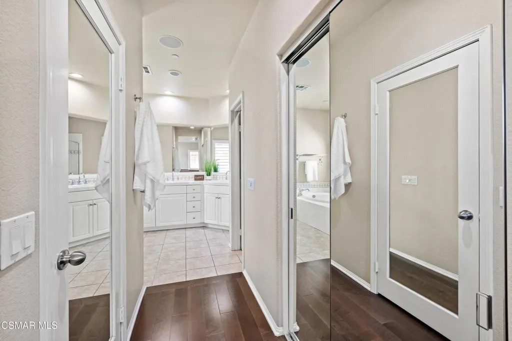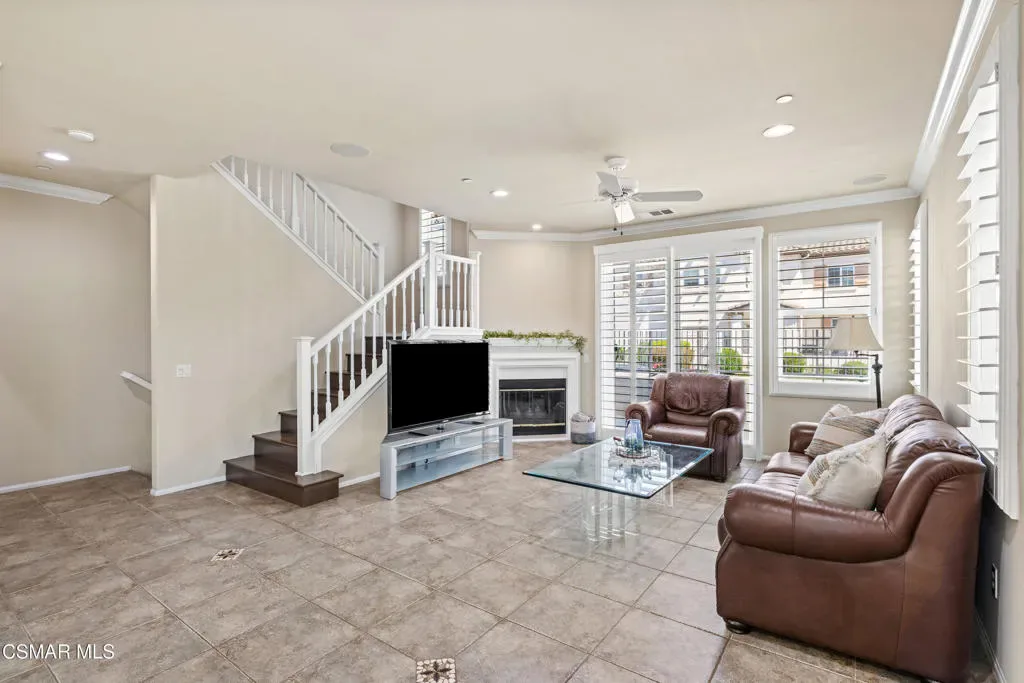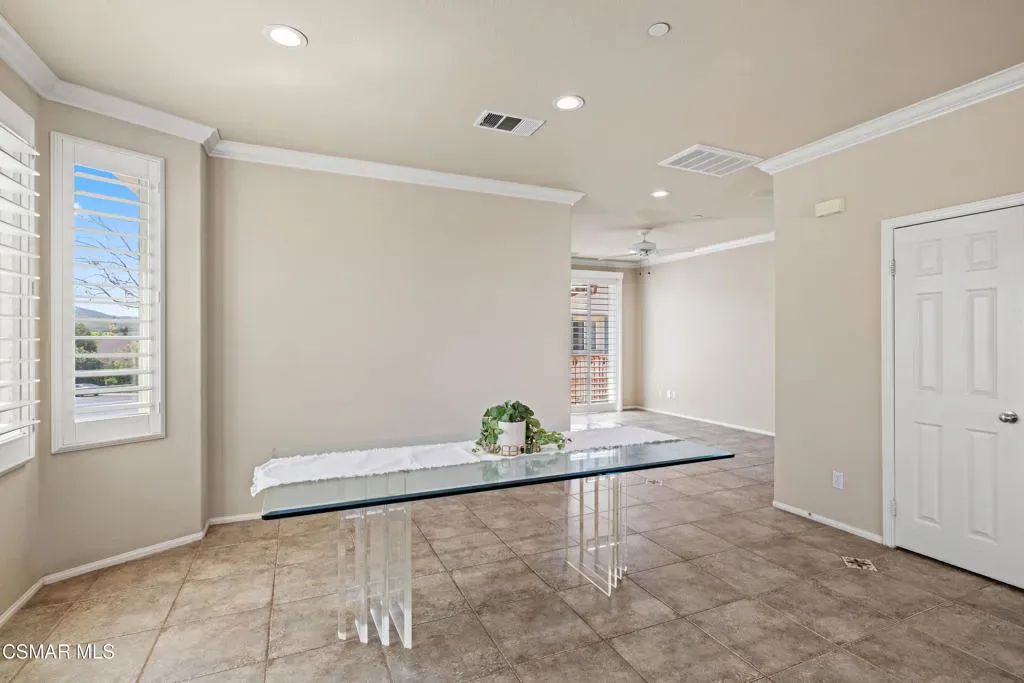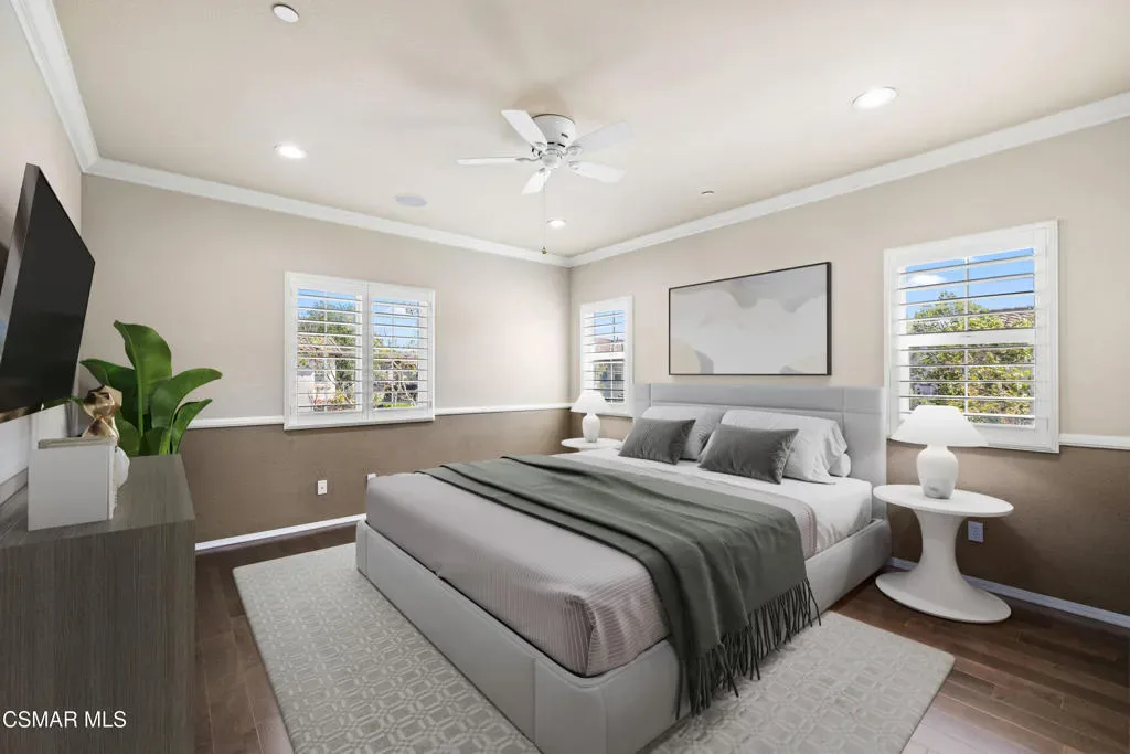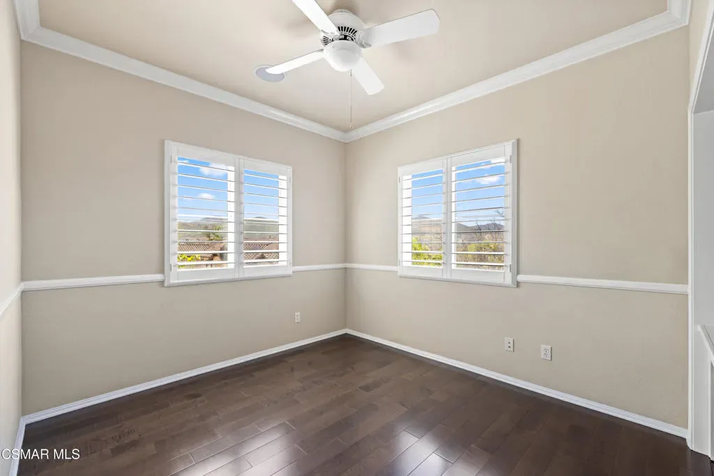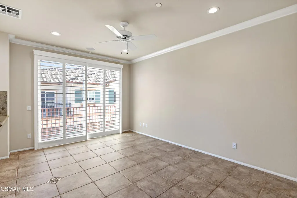 Welcome to this beautifully maintained 3-bedroom, 2.5-bath townhome offering 1,836 square feet of light-filled living space in the highly desirable community of Dos Vientos. You are welcomed by a spacious front patio, perfect for enjoying the mountain views.The home offers an inviting, open layout. The main living area is bright and airy, featuring large windows, wood plantation shutters, surround sound capability, and a seamless flow into the dining area and kitchen, ideal for both everyday living and entertaining. The kitchen features stainless steel appliances and ample cabinetry, with a private balcony just off the kitchen providing an additional outdoor retreat with peaceful neighborhood views.Upstairs, all bedrooms showcase rich maple hardwood flooring and mountain views. The generously sized primary suite includes a walk-in closet, secondary closet, dual sink vanity, soaking tub, and separate shower.Additional highlights include a direct-access attached 2.5-car garage, recessed lighting, and crown molding. Ceiling speakers are installed throughout, ready for your custom sound system. Wood plantation shutters and maple hardwood flooring add warmth and style throughout.Enjoy resort-style amenities including two pools, a spa, and a clubhouse. Ideally located near parks, shopping, and top-rated Sycamore Canyon School (K-8), this home offers the perfect blend of comfort, convenience, and Dos Vientos living.