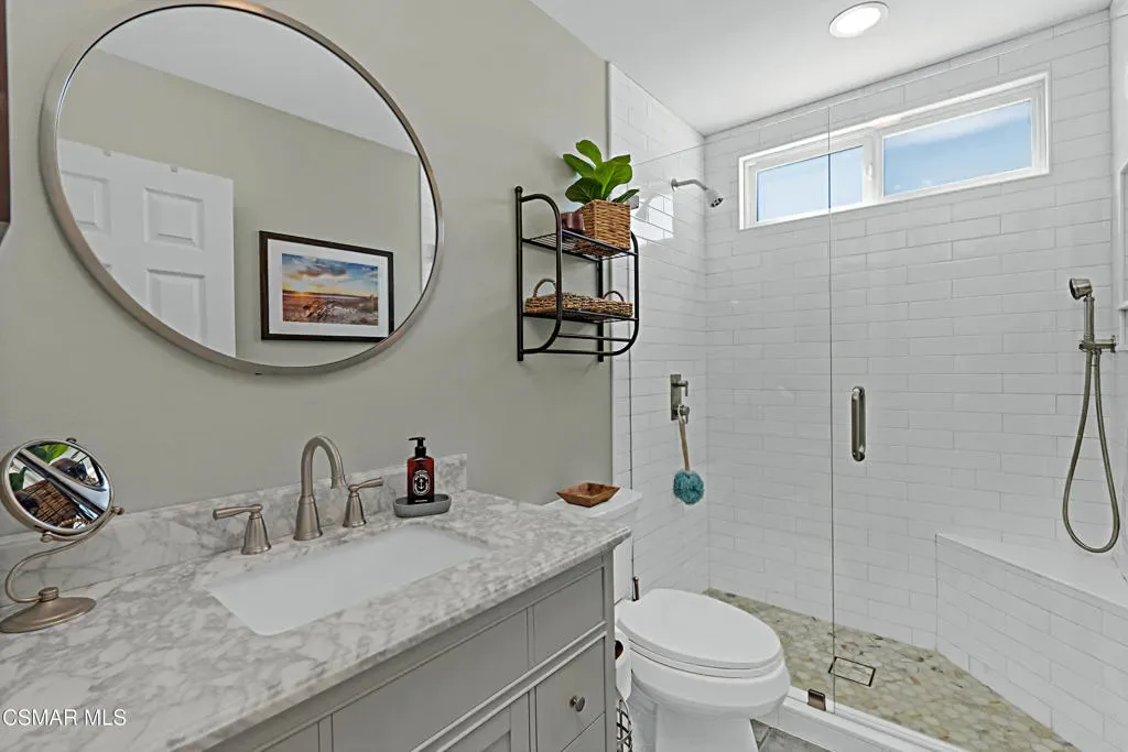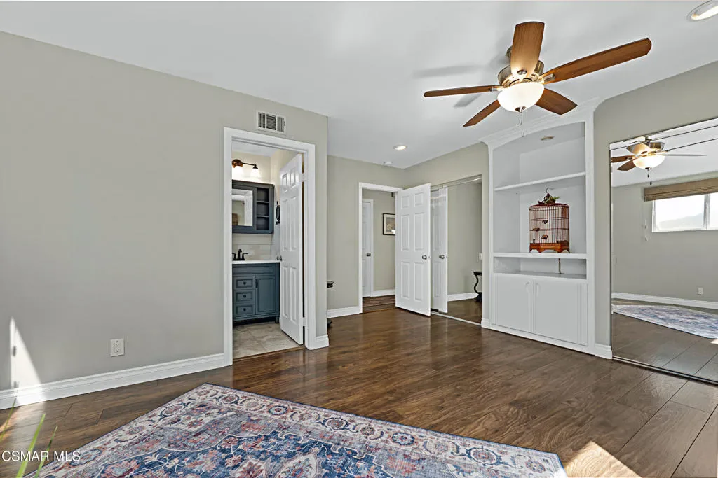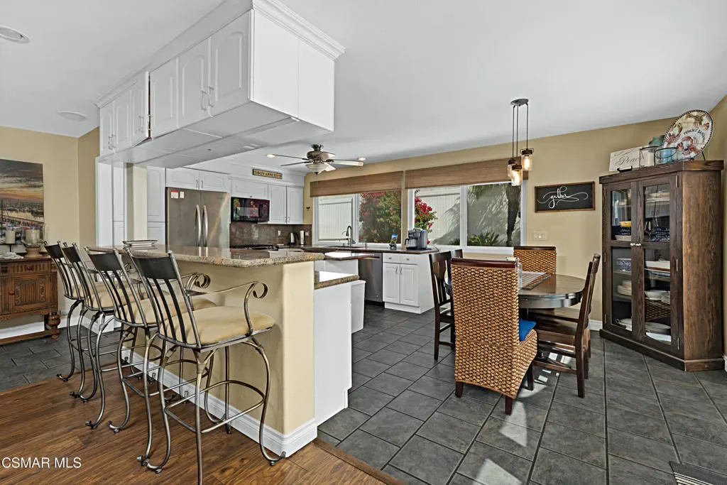 Welcome to this impeccably maintained, single-story gem nestled on a prime corner lot at the end of a quiet cul-de-sac in Newbury Park. Offering over 1,300 square feet of stylishly appointed living space, this 3-bedroom, 2-bathroom residence perfectly balances contemporary flair with a warm, ”homey” atmosphere. The heart of the home features an expansive open floor plan anchored by a stunning ”great room.” High-end laminate and tile flooring flow seamlessly throughout, leading you to a dramatic stone fireplace that serves as the room’s centerpiece. The gourmet kitchen is a chef’s delight, outfitted with smooth granite countertops, a functional center island, and premium stainless steel appliances. Experience true relaxation in the remodeled bathrooms, each boasting attractive tile-enclosed showers and designer touches. The primary suite offers a serene escape with picturesque mountain views, while dual-pane windows throughout much of the home ensure quiet and energy efficiency. A dedicated laundry room provides ample storage with ample cabinetry, and the two-car garage has been thoughtfully converted into a partial living area–perfect for a home gym, hobby room, or den. Step outside to your private paradise. The rear yard is an entertainer’s dream, featuring a gorgeous sparkling pool and a variety of mature fruit trees. Whether you are hosting a summer barbecue or enjoying a quiet morning by the water, the mountain backdrop provides a stunning sense of tranquility.This turnkey masterpiece is ready for you to move in and start making memories. Schedule your private showing today!