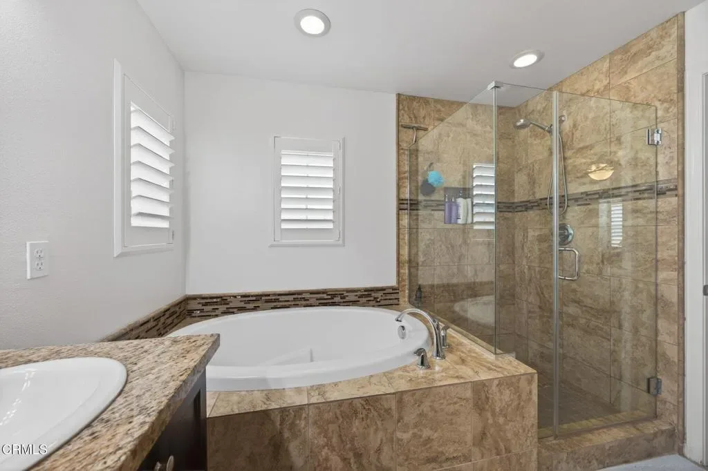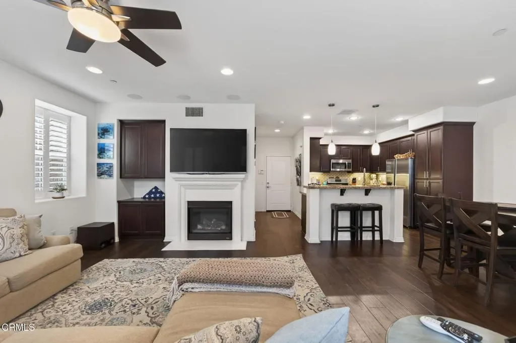 Welcome to this beautifully upgraded 3-bedroom, 2.5-bath townhome offering 1,734 square feet of comfortable living in the highly desirable Oak Terrace Community of Newbury Park. This end unit, built in 2016 has been proudly maintained by the original owners, this home combines modern upgrades with comfort and style.Step inside to find rich hardwood flooring, upgraded cabinetry throughout, and an open-concept layout the connects the living, dining and kitchen areas, complemented by custom shutters, and ceiling fans that enhance the comfort and elegance. The spacious living room features a cozy fireplace and flows seamlessly into the open kitchen, creating the perfect layout for both everyday living and entertaining. Upstairs you will find three bedrooms, including the large primary suite with walk in closet and the convent laundry room with lots of extra cabinetry.Comfort is elevated with dual-zoned air conditioning and added insulation between the first and second floors, helping maintain a quiet and energy efficient environment year round.The attached two car garage features epoxy-coated flooring, a new garage door and additional overhead storage, providing both durability and excellent storage solutions.Outdoor living is just as inviting. Enjoy the private patio area featuring a new gate and relaxing spa perfect for unwinding at the end of the day.Additional highlights include mountain views, fiber optic connectivity for high speed internet and modern living. This exceptional home offers the perfect blend of comfort, upgrades, and location in one of Newbury Park’s most sought-after communities!