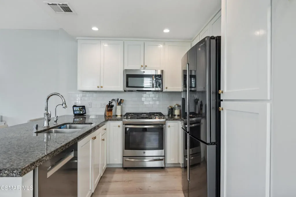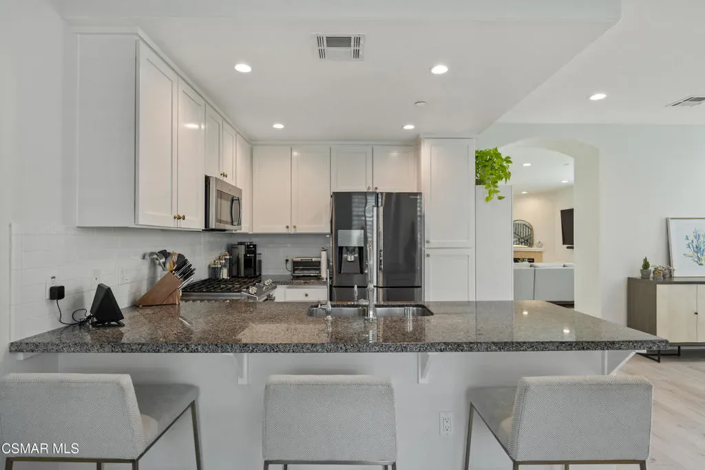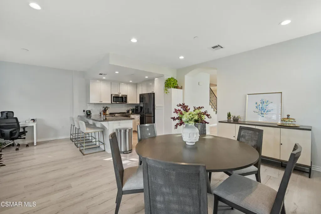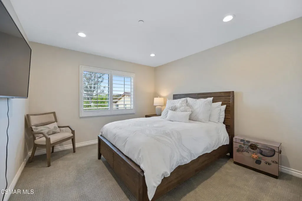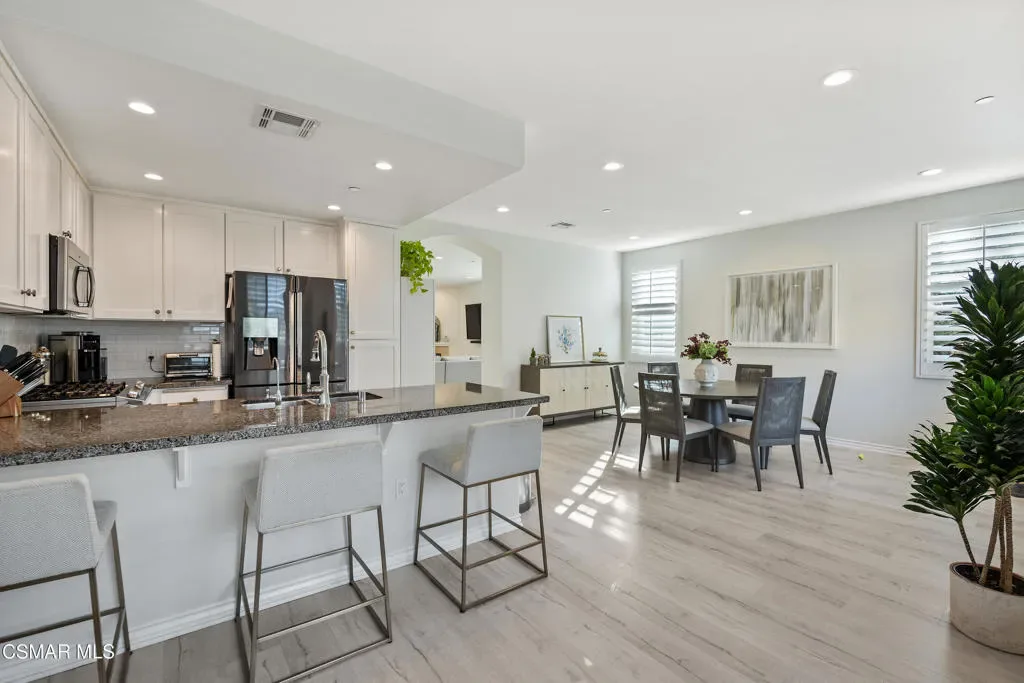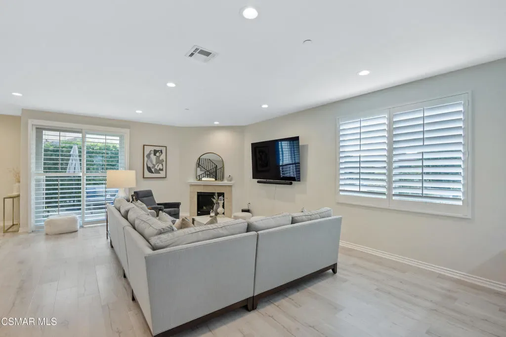 Welcome to 349 Newbury Vista Lane, Newbury Park — a stunning end-unit townhome that perfectly blends modern comfort, privacy, and style. Built in 2017, this spacious 3-bedroom, 2.5-bathroom residence offers approximately 2,200 square feet of beautifully designed living space in one of the Conejo Valley’s most desirable communities.As you step inside, you’re greeted by a bright and open floor plan with high ceilings, recessed lighting, and plantation shutters throughout. The main level features a large, inviting living room centered around a cozy fireplace–ideal for entertaining or relaxing evenings at home. A custom built-in cabinet with a wine refrigerator and countertop adds an elegant touch, perfect for hosting guests or enjoying a quiet night in.The kitchen features granite countertops, subway tile backsplash, stainless steel appliances including a built-in microwave and sink, and counter bar seating area. The layout flows seamlessly into a large dining area–currently arranged as a formal dining space but originally designed to accommodate both a family room and a breakfast area. This flexible design allows you to tailor the space to your lifestyle and needs.Upstairs, the expansive primary suite is a true retreat. It features two walk-in closets, a private balcony and a luxurious en suite bathroom complete with dual sinks, a large shower, and soaking tub. Recent updates throughout all bathrooms give the home a fresh, designer-inspired feel. Two additional upstairs bedrooms share a beautifully remodeled full hall bathroom, perfect for family, guests, or a home office.Additional highlights include a main-level half bathroom, a convenient laundry room with storage, a tankless water heater, a whole-house water filtration system, and plenty of built-in storage in the attached two-car garage with direct access. Smart home features like light controls and nest thermostat are also featured.The private outdoor patio–finished with stylish concrete pavers–offers a peaceful place to unwind, enjoy a morning coffee, or take in the beautiful Conejo Valley sunsets. As a rare end unit, the home enjoys additional privacy and natural light, with only one shared wall.The community itself offers resort-style amenities, including a sparkling pool and well-maintained grounds, creating a relaxed and welcoming environment. The location is ideal–nestled in the heart of Newbury Park near top-rated schools, parks, shopping, dining, and easy freeway access for a convenient commute.From its thoughtful layout to its high-end finishes and serene setting, this exceptional townhome truly has it all. Whether you’re seeking space, style, or a low-maintenance lifestyle, 349 Newbury Vista Lane offers the perfect blend of sophistication and comfort in one of Ventura County’s most desirable neighborhoods.Don’t miss this opportunity to own a move-in ready, beautifully upgraded home with every modern amenity and timeless appeal. Come experience the best of Newbury Park living today!