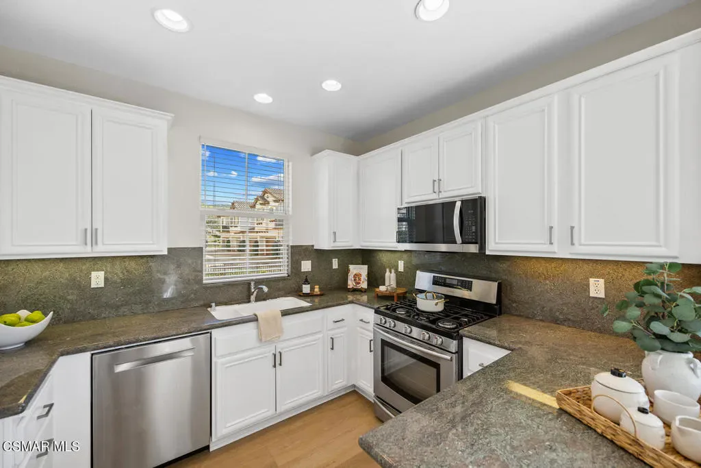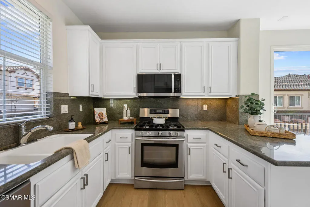 Modern End-Unit Living with Mountain Views in Dos VientosExperience the best of Aldea in this sun-drenched, move-in-ready end unit. This home welcomes you with brand-new luxury plank flooring and a fresh, neutral palette throughout. The heart of the home is a spacious main level featuring a fireplace-warmed living room, formal dining area, den, and a bright kitchen with granite counters and stainless appliances–perfect for morning coffee on your private balcony.Retreat upstairs to a primary suite that frames stunning mountain views, complete with a spa-like bath and soaking tub. With brand-new carpeting, a recently remodeled guest bath, and an oversized two-car garage with ample storage, every detail is handled. Enjoy resort-style amenities including two pools and spas, all while being steps from the Village Town Center and the top-rated Sycamore Canyon K-8 school.