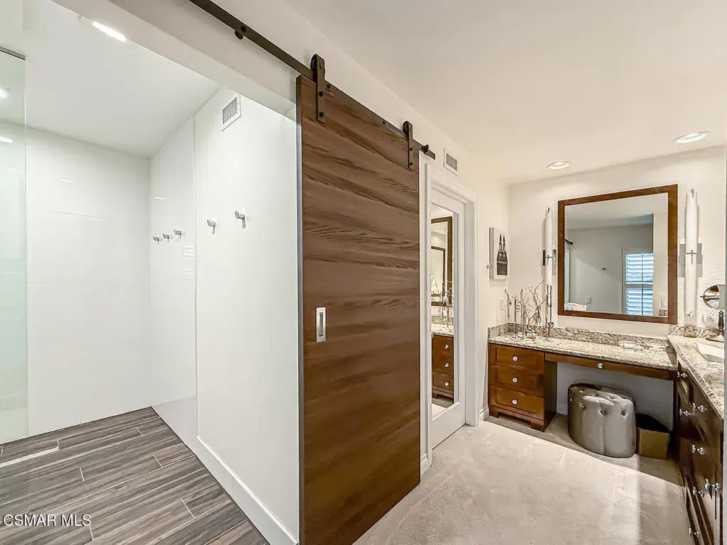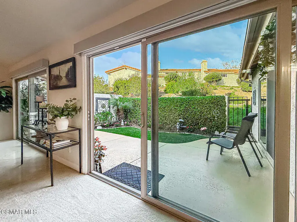 3BR/2.5BA condo in gated Los Robles Estates in Newbury Park. Main-level primary suite + loft. 2-car garage. HOA covers roof/exterior. This attached condominium is located within the gated Los Robles Estates community in Newbury Park and offers 3 bedrooms, 2.5 bathrooms, and approximately 2,148 square feet across two levels. The layout places most daily living on the main floor, with a large open loft upstairs providing flexible additional space.The main level features a vaulted-ceiling living room with a fireplace and sliding doors that open to a private patio, bringing in natural light and extending the living space outdoors. The living room connects directly to the dining area and kitchen, creating a functional and open flow for everyday use. The kitchen offers ample cabinetry, built-in appliances, and convenient access to the dining space.The primary suite is located on the main level and includes double-door entry, a private bath with separate tub and shower, dual vanities, a walk-in closet, and sliding-door access to the patio. Two additional bedrooms, a full bathroom, and a powder room are also on the main floor. An indoor laundry room and direct access to the attached two-car garage add everyday convenience.Upstairs, the open loft overlooks the living area and works well as a bonus room, home office, or secondary living space. The home includes both front and rear patio areas, offering multiple outdoor areas within the unit.The HOA covers the exterior structure and roof. Community amenities include pools, spas, playing courts, and maintained common areas. The air conditioning system is approximately 11 years old, and the home includes a 50-gallon water heater. Monthly HOA dues apply. The location provides convenient access to nearby shopping, dining, and major roadways.