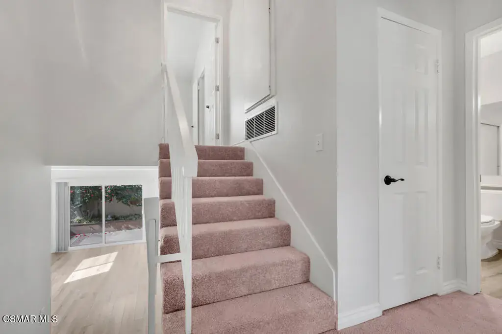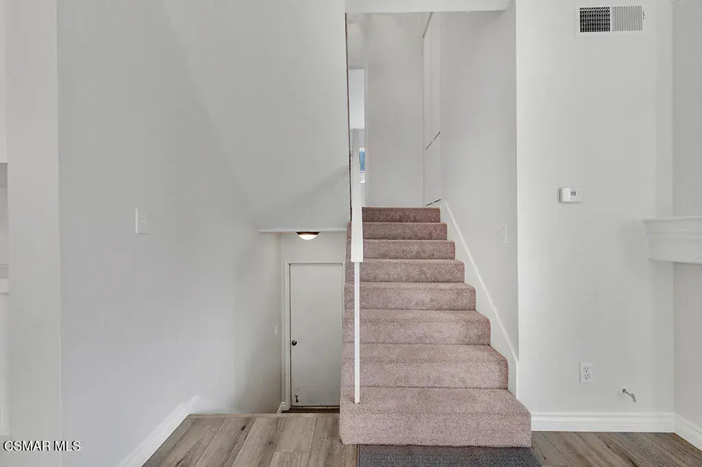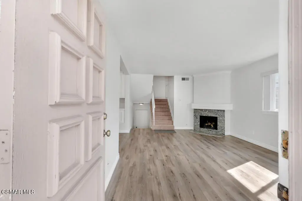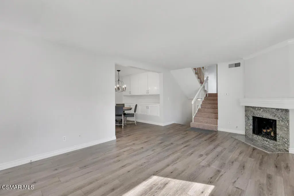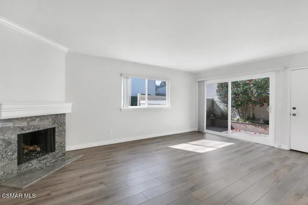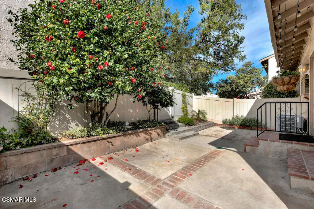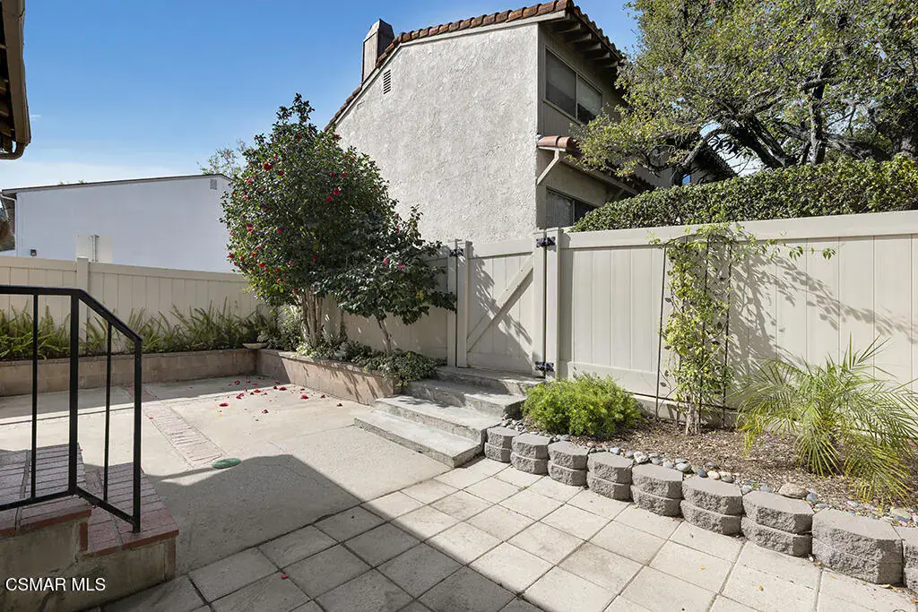 Welcome to Newbury Park and the highly desirable Marlborough Hills community! This beautiful corner end-unit offers three bedrooms and two bathrooms in one of the best locations in the complex. The home features a large private patio with lush landscaping, perfect for relaxing or entertaining. Inside, you’ll find new wood-like flooring, new carpet, freshly painted smooth ceilings, and a decorative fireplace that adds warmth and charm. The recently renovated kitchen showcases granite countertops, stainless steel appliances, crown molding, recessed lighting, and under-cabinet lighting, creating a bright and modern space. Upstairs, there are two generously sized bedrooms with vaulted ceilings, one featuring a walk-in closet, along with a full bathroom on the same level. The spacious primary suite boasts high ceilings, a ceiling fan, an oversized walk-in closet, and its own private full bathroom. Additional highlights include newer dual-pane windows, central air conditioning, and a two-car garage. Ideally situated within the community, this unit enjoys close proximity to the beautiful pool and spa, sports court, and tennis court. Centrally located near shopping, dining, award-winning schools, and miles of hiking and biking trails, this home truly offers the best of Newbury Park living.