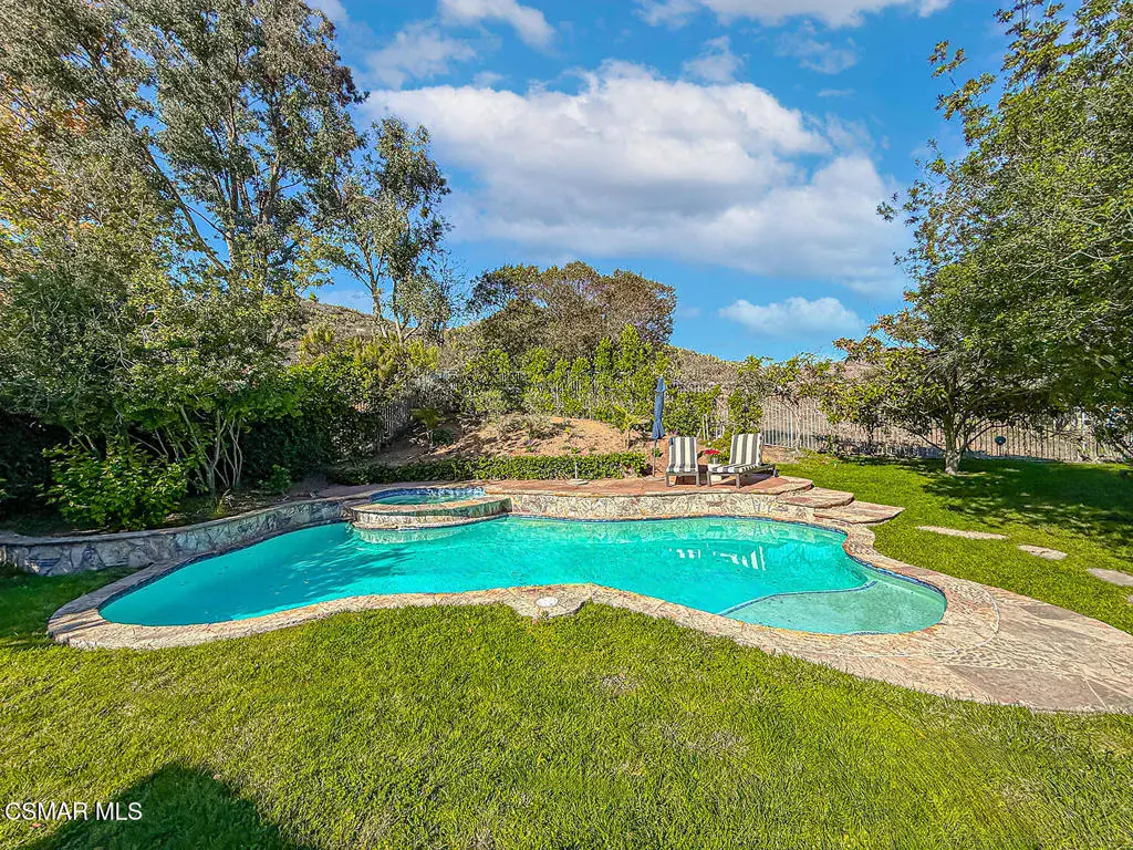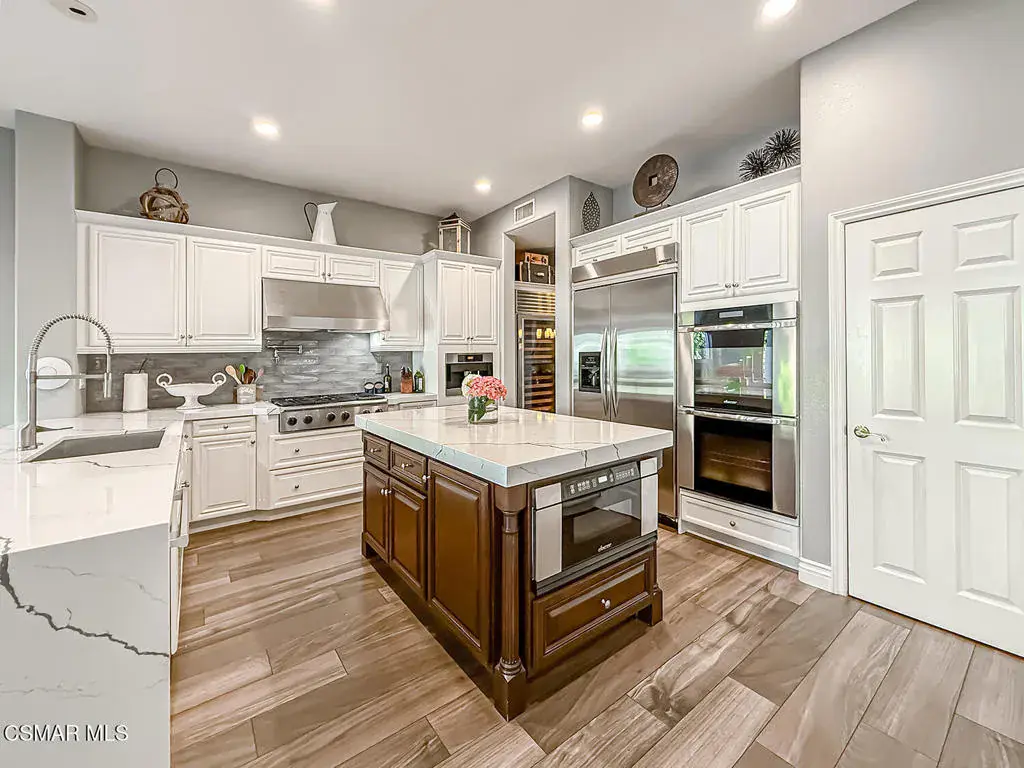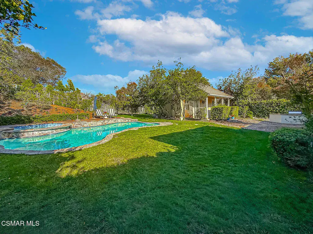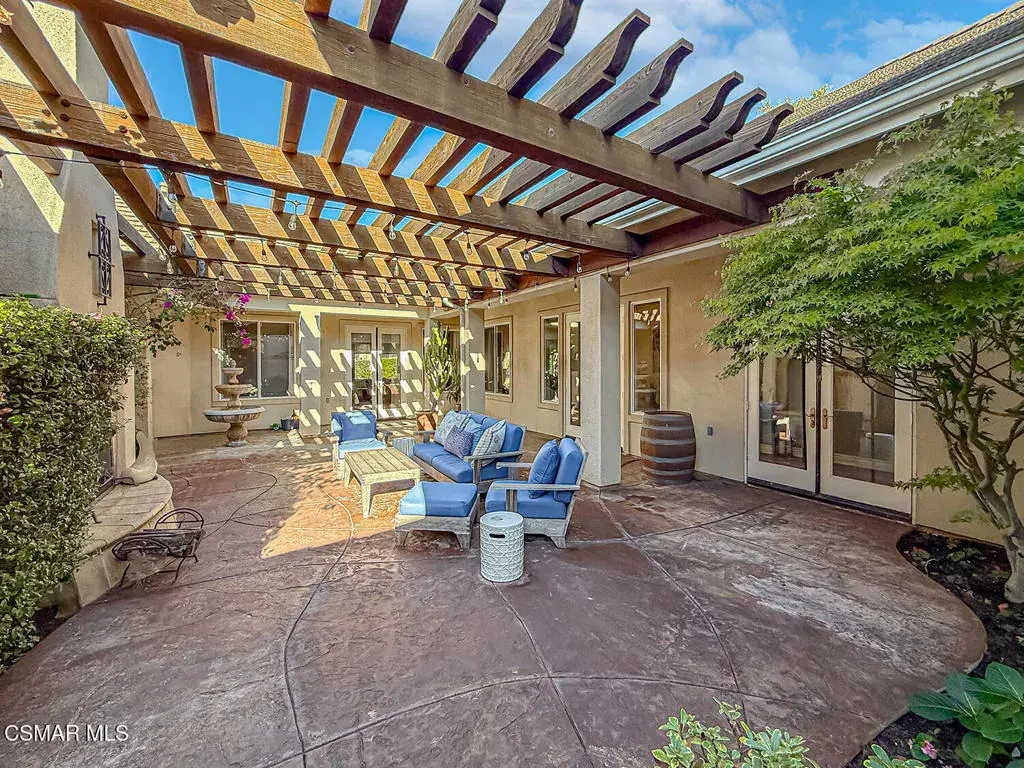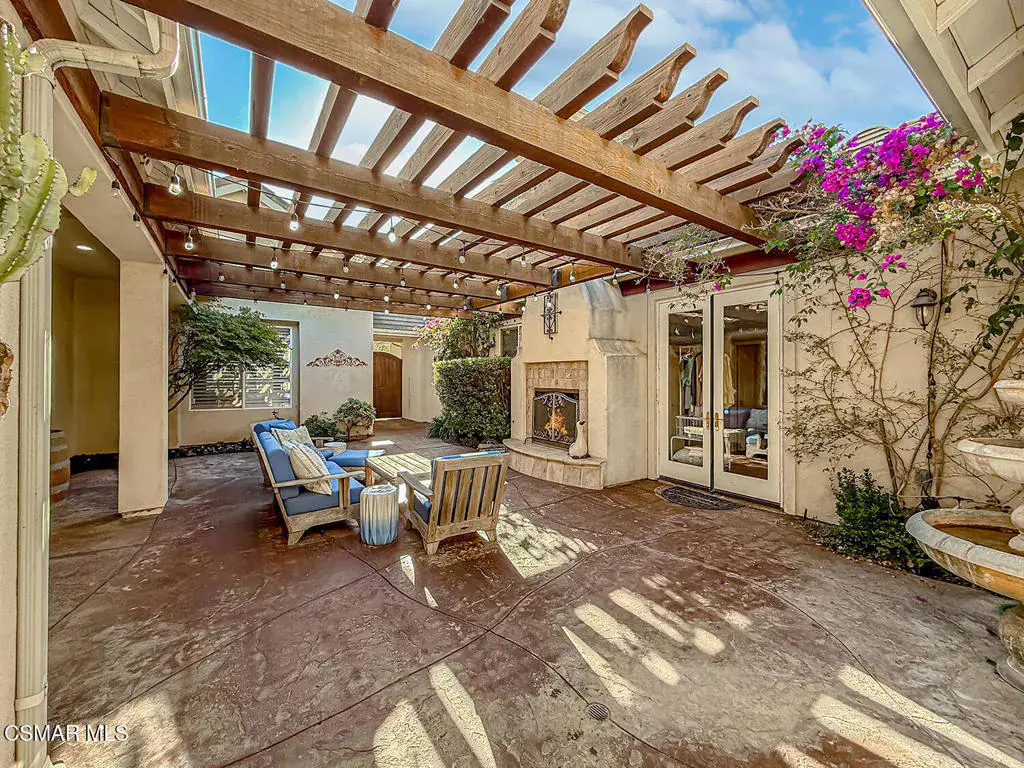 Welcome to your private single-story oasis in the prestigious gated Palermo community of Dos Vientos Ranch.This stunning single-story residence blends elegance, comfort, and resort-style living in harmony as one of the few homes in the area that offers the total package of, a relaxing courtyard, sparkling pool, spacious casita and a sought after single-story living experience, with only 1 direct neighbor.Featuring just under 4000 square feet of thoughtfully designed living space – including a spacious casita that offers a warm and cozy fireplace & makes a great seating area while also large enough to accommodate a king size bed. and allows plenty of room for 65-inch TV. This amazing casita offers the ultimate in flexibility & may be used as a private home office, guest quarters, in-laws home, nanny’s quarters, or fitness area or play room.From the moment you arrive, this home showcases exceptional quality, featuring a beautiful stone front accented doorway and a luxury crafted iron door, setting the tone for refined accents throughout the home. Upon entry to this home you’ll be captivated by the beautiful interior, featuring high ceilings, large picture windows, and current office or what may be your living room or multi-purpose room directly off entry. Offering an inviting open flow between living spaces in the spacious family room with surround sound multi zone speakers and luxury kitchen, with cozy fireplace for all to enjoy in both rooms. At the heart of the home lies a chef’s dream kitchen, with beautiful large island adding extra storage space as well as prep area. This amazing space showcases wonderful Dacor stainless steel cook top, double oven and microwave, Miele dishwasher and built-in coffee maker, stainless steel built-in refrigerator, and SubZero luxury wine fridge. Elegant contemporary quartz countertops, a walk-in pantry, and a convenient filtered pot filler behind the stove elevate both function and style — making this kitchen as beautiful as it is practical.One of the most amazing features of this home is the wonderful central courtyard, around which the entire home is gracefully designed. Custom Wood gates allow guests to enter this serene space, perfect for lounging, relaxing, or entertaining, complete with a fireplace and fountain that create a touch of ambiance and sophistication with multi-zone outdoor speakers.The primary suite offers a private retreat with a spa-inspired jacuzzi over size sunken bath, upgraded tile, dual sinks, vanity, upgraded TOTO toilet with bidet, and direct access to the serene and private backyard.Secondary bedrooms are spacious and thoughtfully appointed and secondary baths also feature upgraded Toto toilets and neutral upgraded tile.The additional spacious office provides the ideal setting for working from home or creative pursuits.The private casita includes its own kitchenette with updated quartz countertops, full bathroom with beautiful quartz counters and upgraded TOTO toilet, and a warm and cozy fireplace, ideal for guests, extended family, or a quiet studio space.Step outdoors and enjoy your entertainer’s paradise featuring a sparkling pool and spa, built-in barbecue area, and lush landscaping, covered patio and the perfect hillside backdrop for California’s indoor-outdoor lifestyle Additional highlights include a 3 car tandem garage with custom New Age lockable aluminum steel cabinetry, decorative hard tile garage floor designed to showcase your garage and cars that occupy it. Don’t miss extra long driveway to accommodate many side by side vehicles while entertaining.Convenient laundry room off garage entry with deep sink & washer/dryer to stay at property,Serene gated privacy, sought-after location near shopping, dining, hiking and biking trails and nearby scenic parks .This home truly captures the essence of luxury California living — sophisticated, light-filled, and designed for connection, comfort, and style, such a great forever