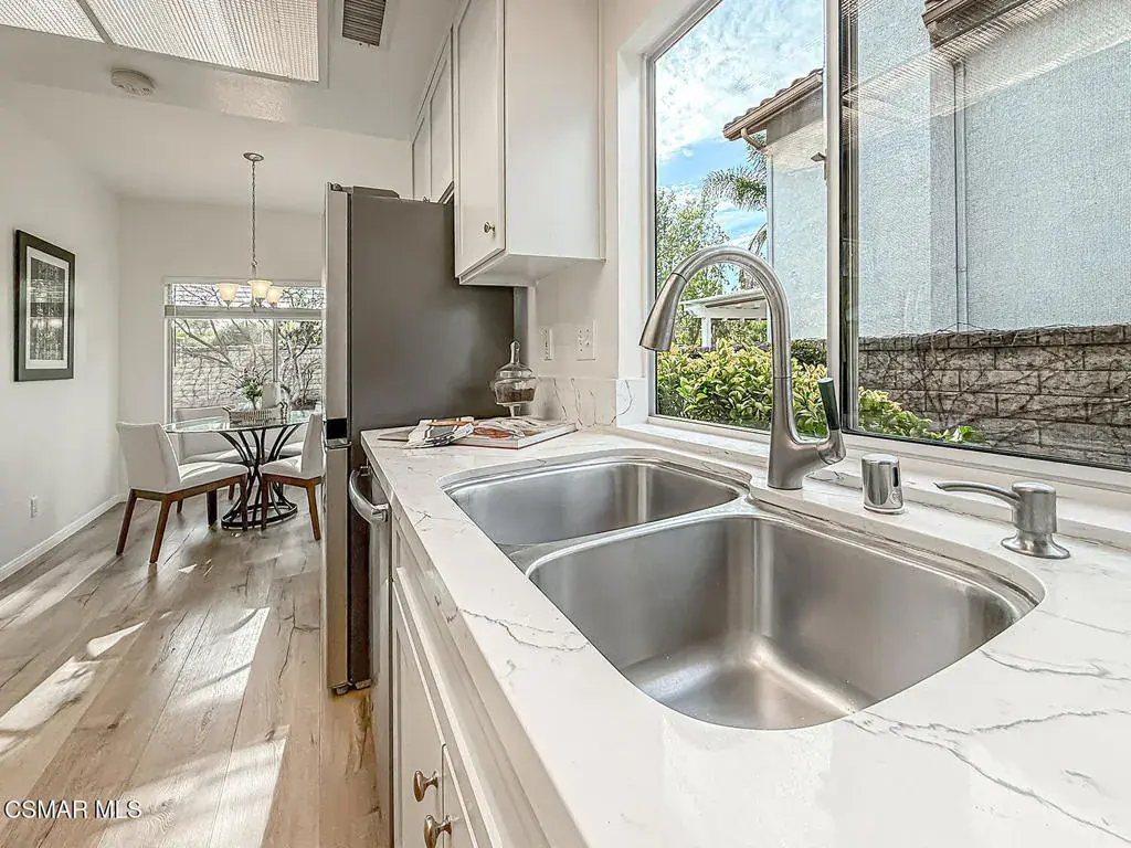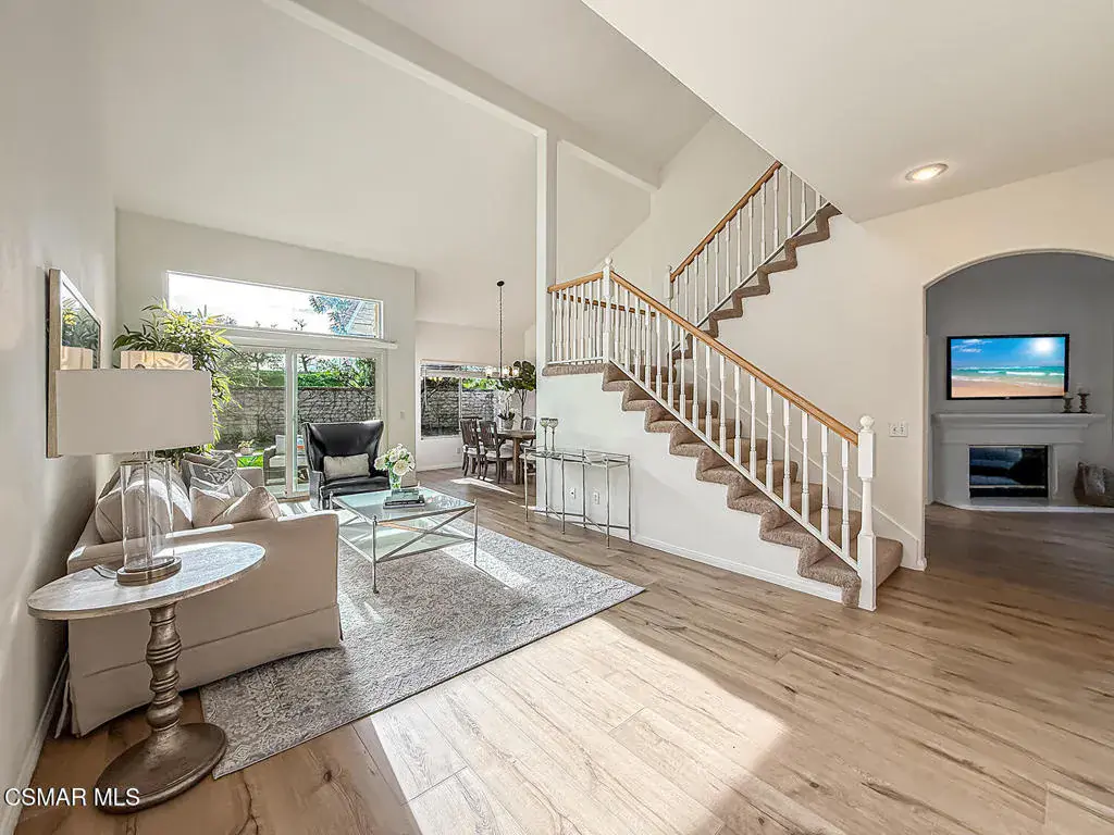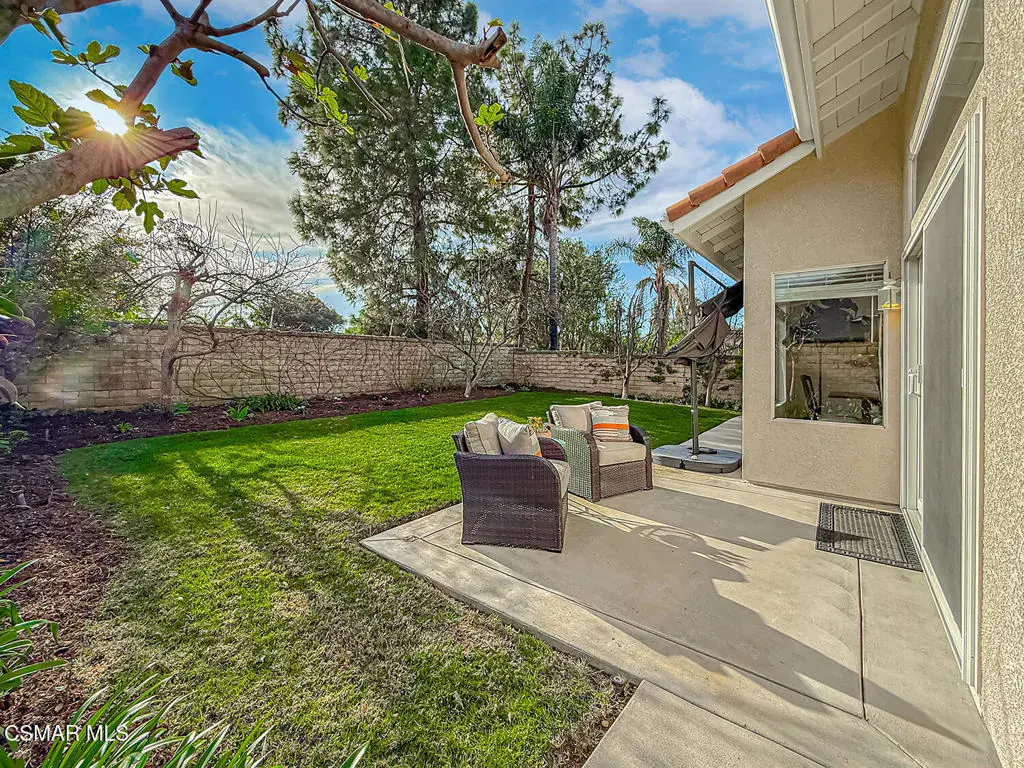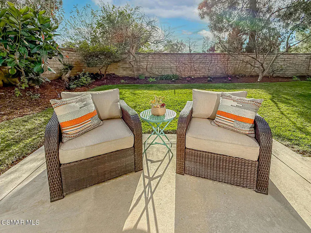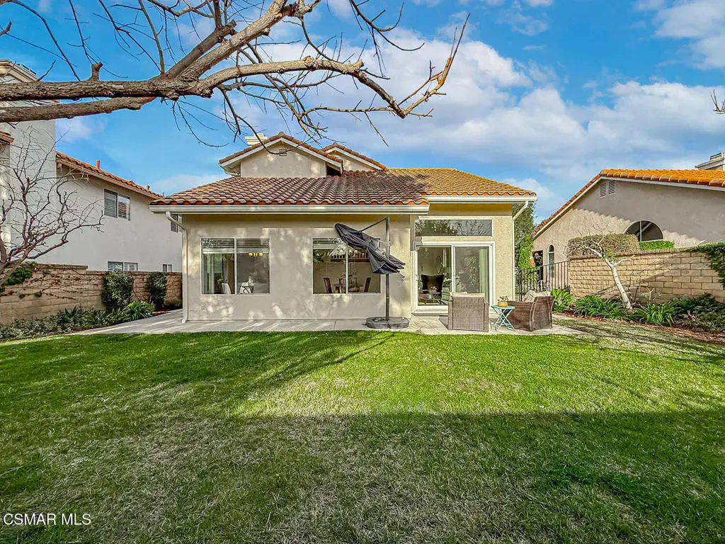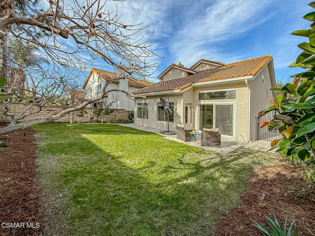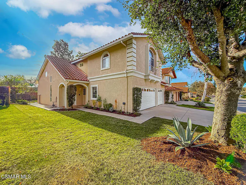 Welcome to Guard Gated Rancho Conejo!Are you looking for a lovely 3 bedroom, 2.5 bath, 1900+ SF 2 story home, WITH A 3 CAR GARAGE and newer GORGEOUS kitchen? Look no further! Upon entering, you will experience the super sunny living and dining rooms. The recently updated white and grey kitchen has newer custom shaker cabinets, quartzite counters, and newer appliances too! The Family Room with fireplace is nearby. Newer vinyl plank flooring was installed in most of the downstairs in a tasteful neutral tone. Also downstairs is a half bath and indoor laundry. Upstairs you will see a cozy flex space…could be a loft, reading area or work out space…you choose! Down the hall are two nice sized guest bedrooms that are near the guest bath. The peaceful master suite is complete with a walk in closet, a larger bathroom with a tub, separate shower and private commode area. Outside you will notice lovely fruit trees, a large grassy area and patio…the perfect place to enjoy sunsets with family and friends! Washer, Dryer and Kitchen Refrigerator INCLUDED. Exterior was freshly painted. Newer Carpet. Close to Blue Ribbon Schools, Restaurants, Hiking and Pickleball Courts. Come take a look!