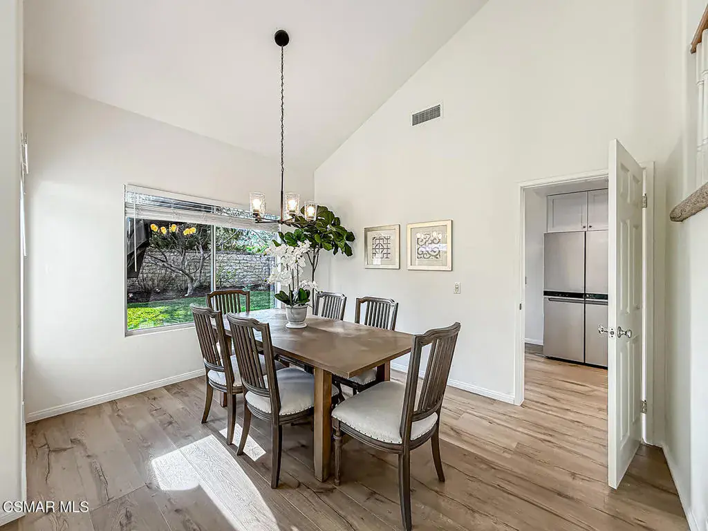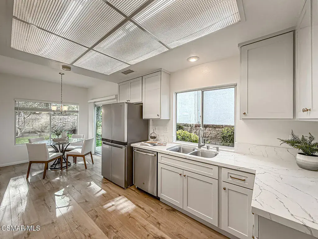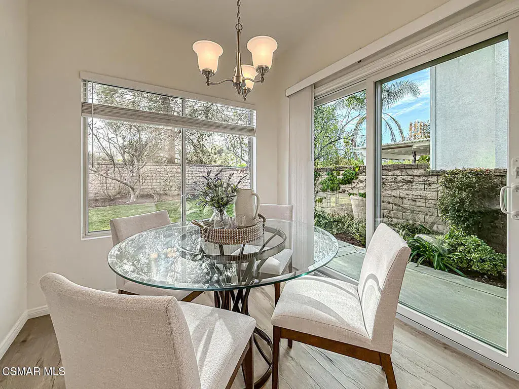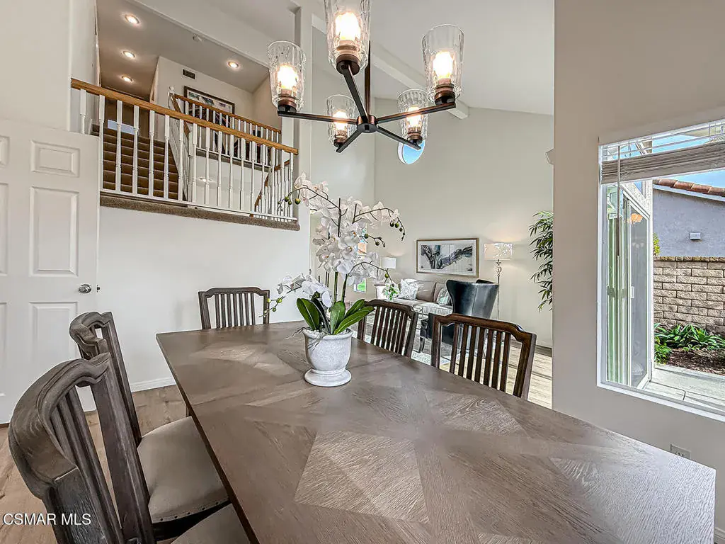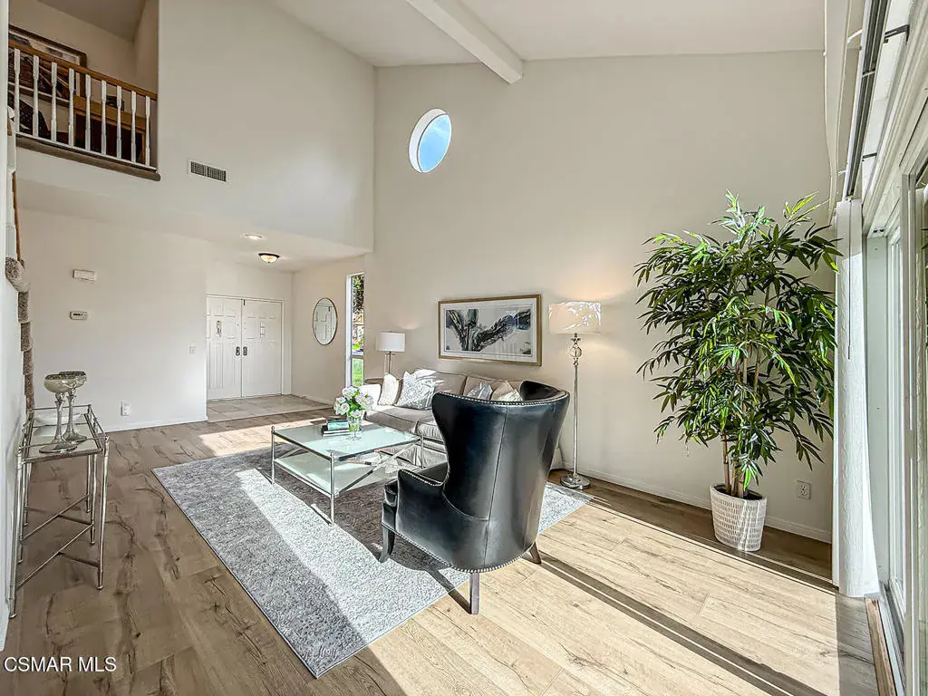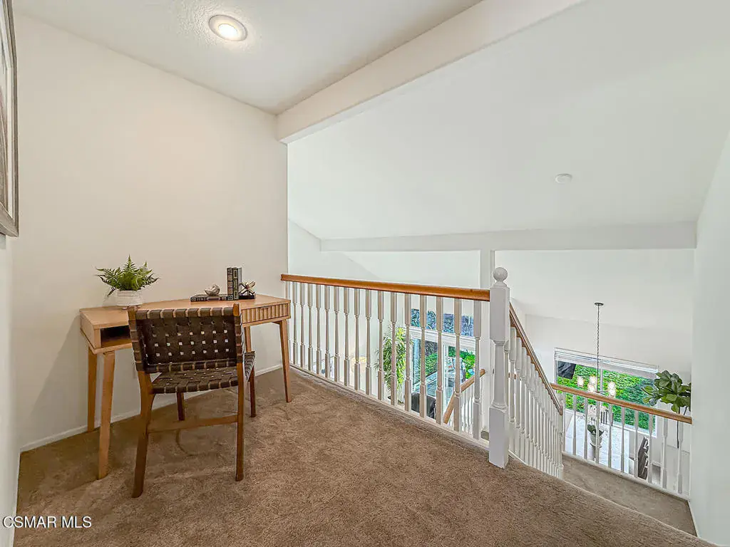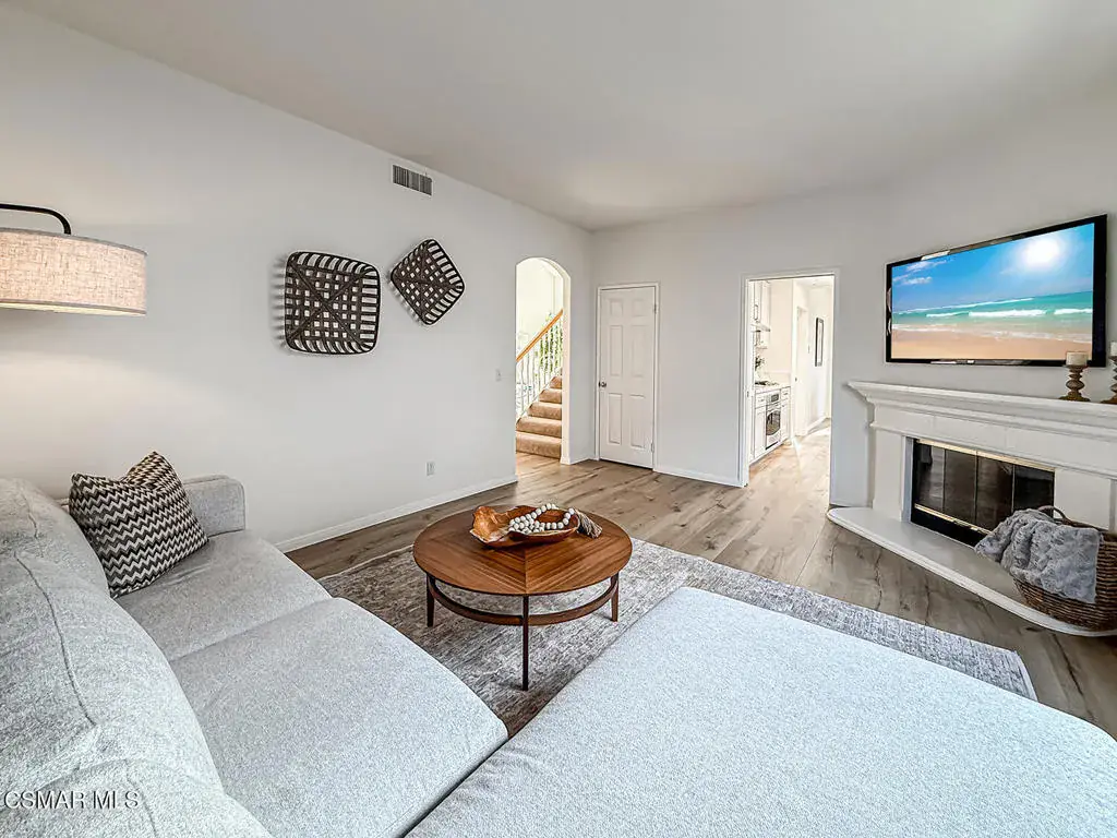 Welcome to Guard Gated Rancho Conejo!Are you looking for a lovely 3 bedroom, 2.5 bath, 1900+ SF 2 story home, WITH A 3 CAR GARAGE and newer GORGEOUS kitchen? Look no further! Upon entering, you will experience the super sunny living and dining rooms. The recently updated white and grey kitchen has newer custom shaker cabinets, quartzite counters, and newer appliances too! The Family Room with fireplace is nearby. Newer vinyl plank flooring was installed in most of the downstairs in a tasteful neutral tone. Also downstairs is a half bath and indoor laundry. Upstairs you will see a cozy flex space…could be a loft, reading area or work out space…you choose! Down the hall are two nice sized guest bedrooms that are near the guest bath. The peaceful master suite is complete with a walk in closet, a larger bathroom with a tub, separate shower and private commode area. Outside you will notice lovely fruit trees, a large grassy area and patio…the perfect place to enjoy sunsets with family and friends! Washer, Dryer and Kitchen Refrigerator INCLUDED. Exterior was freshly painted. Newer Carpet. Close to Blue Ribbon Schools, Restaurants, Hiking and Pickleball Courts. Come take a look!