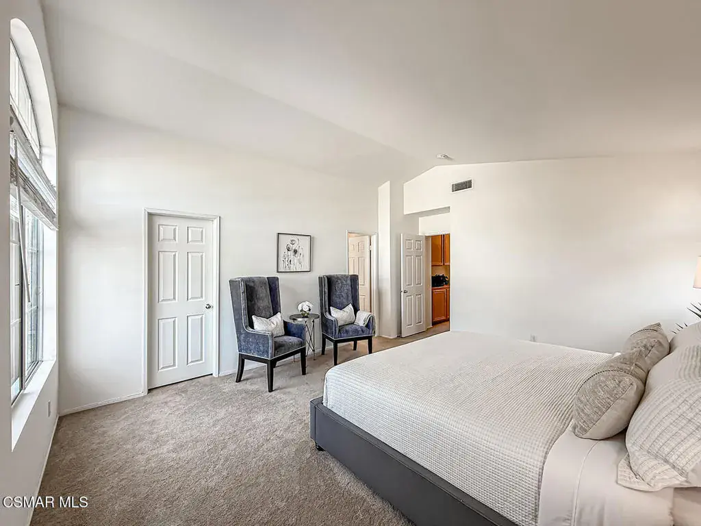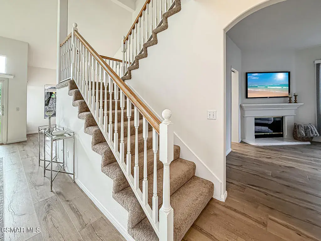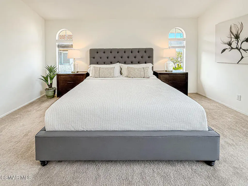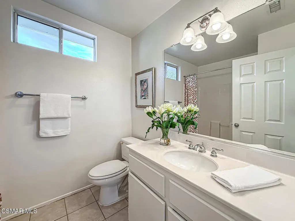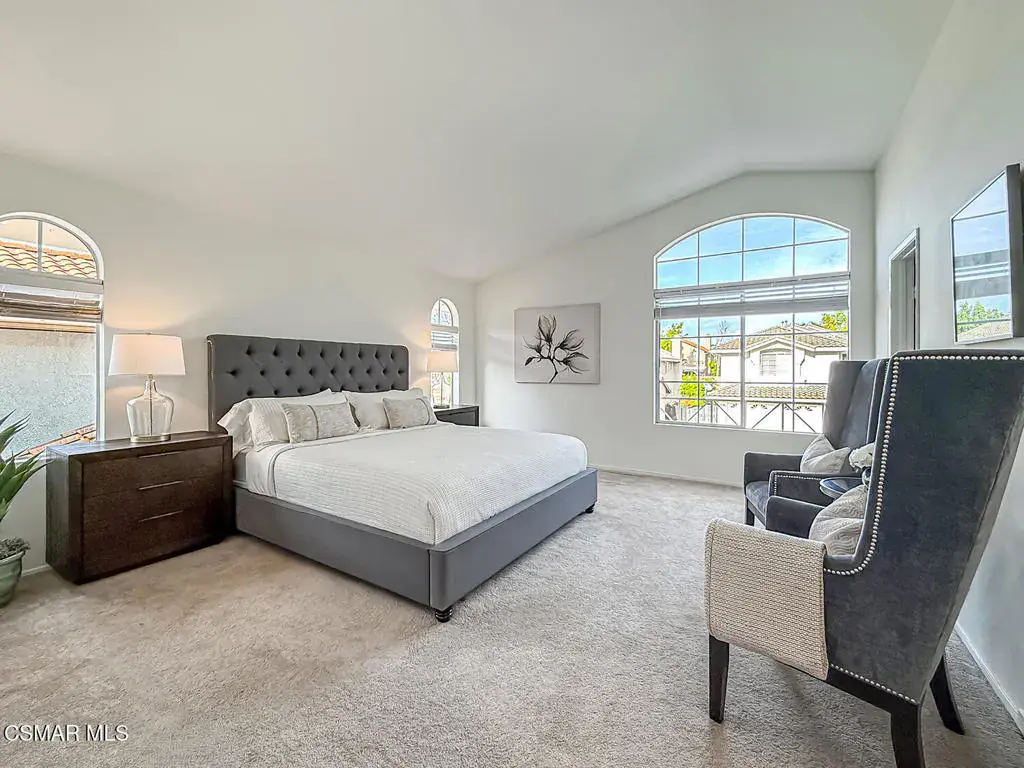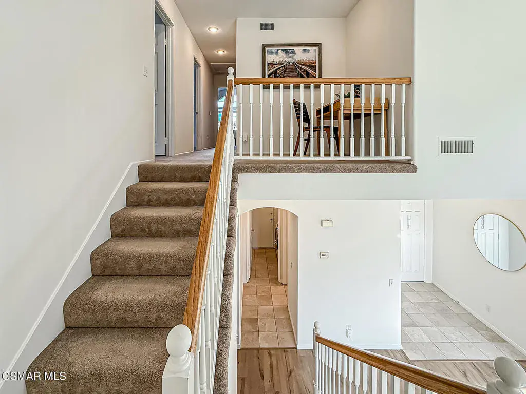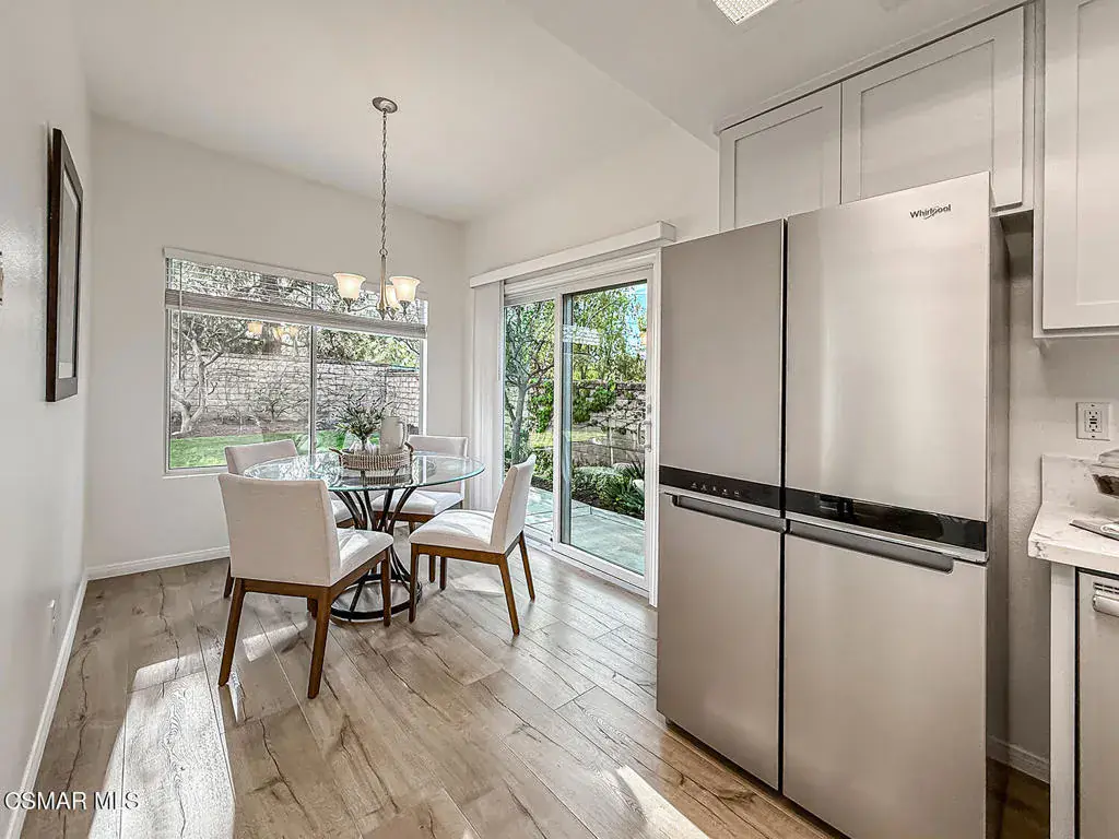 Welcome to Guard Gated Rancho Conejo!Are you looking for a lovely 3 bedroom, 2.5 bath, 1900+ SF 2 story home, WITH A 3 CAR GARAGE and newer GORGEOUS kitchen? Look no further! Upon entering, you will experience the super sunny living and dining rooms. The recently updated white and grey kitchen has newer custom shaker cabinets, quartzite counters, and newer appliances too! The Family Room with fireplace is nearby. Newer vinyl plank flooring was installed in most of the downstairs in a tasteful neutral tone. Also downstairs is a half bath and indoor laundry. Upstairs you will see a cozy flex space…could be a loft, reading area or work out space…you choose! Down the hall are two nice sized guest bedrooms that are near the guest bath. The peaceful master suite is complete with a walk in closet, a larger bathroom with a tub, separate shower and private commode area. Outside you will notice lovely fruit trees, a large grassy area and patio…the perfect place to enjoy sunsets with family and friends! Washer, Dryer and Kitchen Refrigerator INCLUDED. Exterior was freshly painted. Newer Carpet. Close to Blue Ribbon Schools, Restaurants, Hiking and Pickleball Courts. Come take a look!