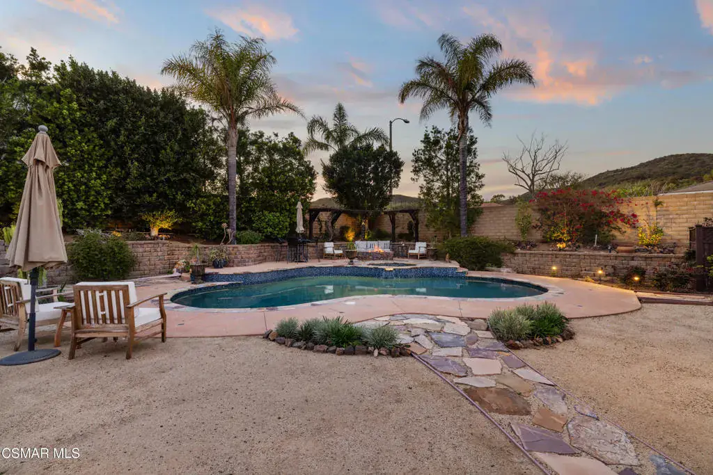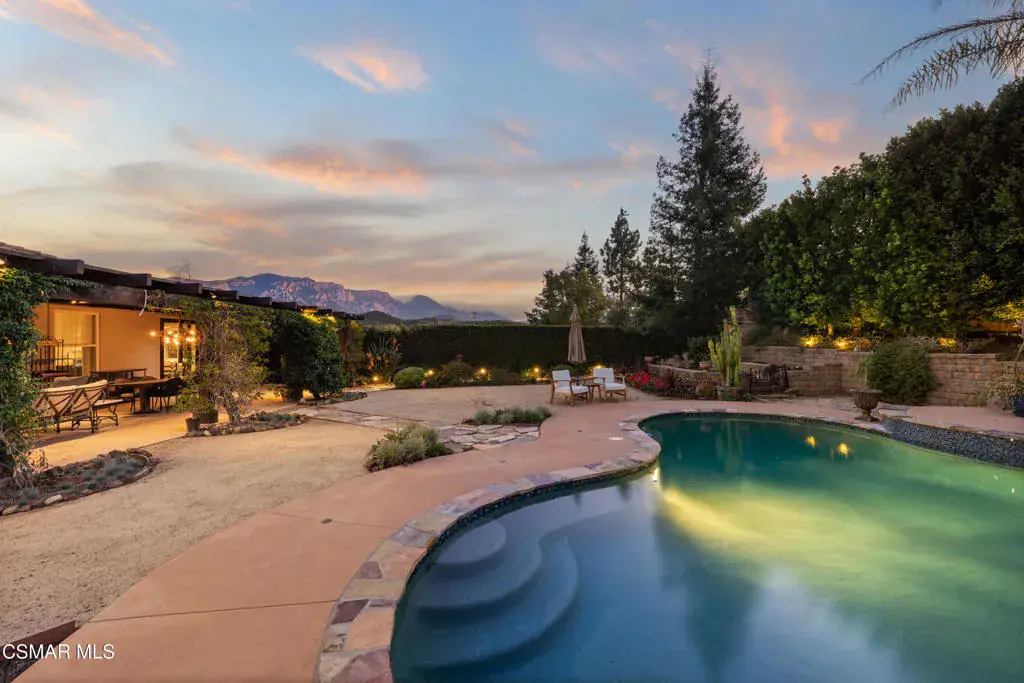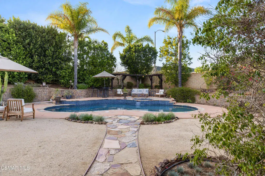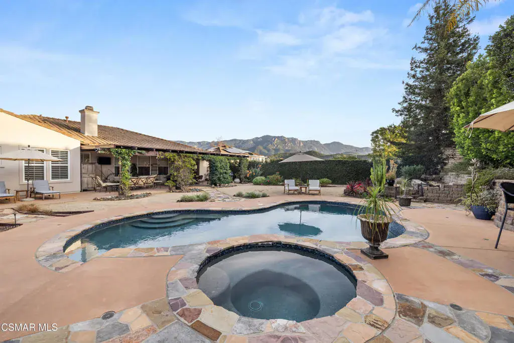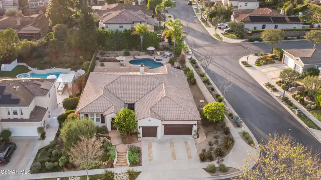 Stunning single-story Spanish-style home located on a private cul-de-sac in the exclusive gated community of Virazon. Situated on a premium corner lot spanning approximately 13,000 square feet, this residence offers exceptional privacy with 4 bedrooms, 3 bathrooms, and over 3,000 sq ft of open, light-filled living space with soaring ceilings.The gourmet kitchen features granite countertops, custom cabinetry, a large center island, stainless steel appliances, and a butler’s pantry. The inviting living room includes a fireplace and built-in wall unit, ideal for entertaining.Enjoy a private backyard oasis with pool, spa, large covered patio for indoor/outdoor living, and breathtaking panoramic views of Mount Boney and the Santa Monica Mountains. Additional highlights include low-maintenance Spanish-style landscaping and a three-car garage with plenty of built-in storage.