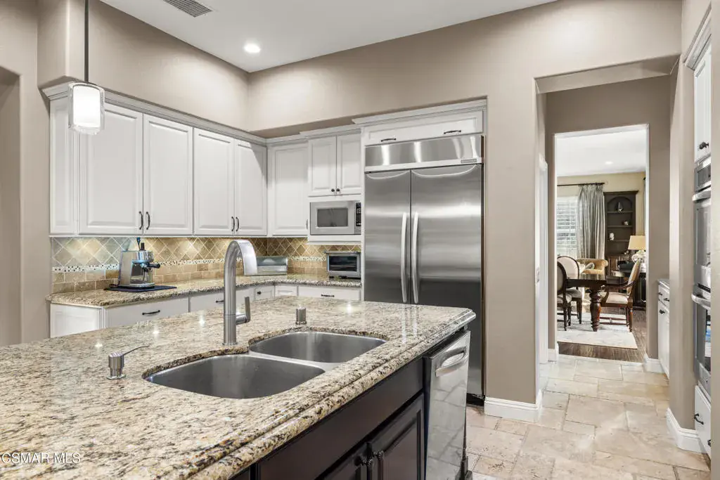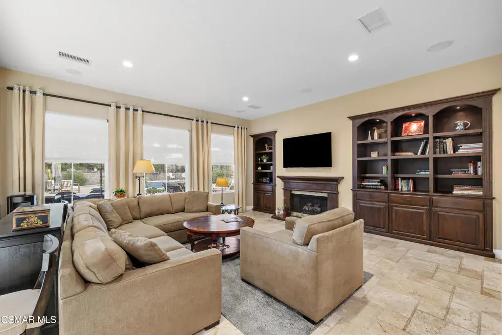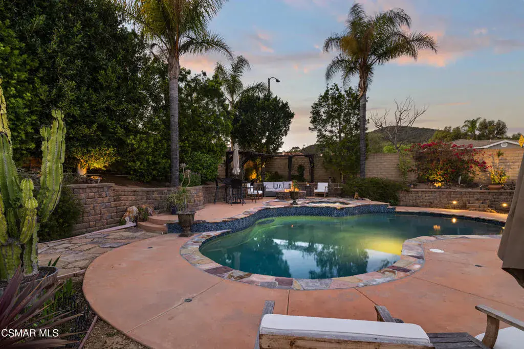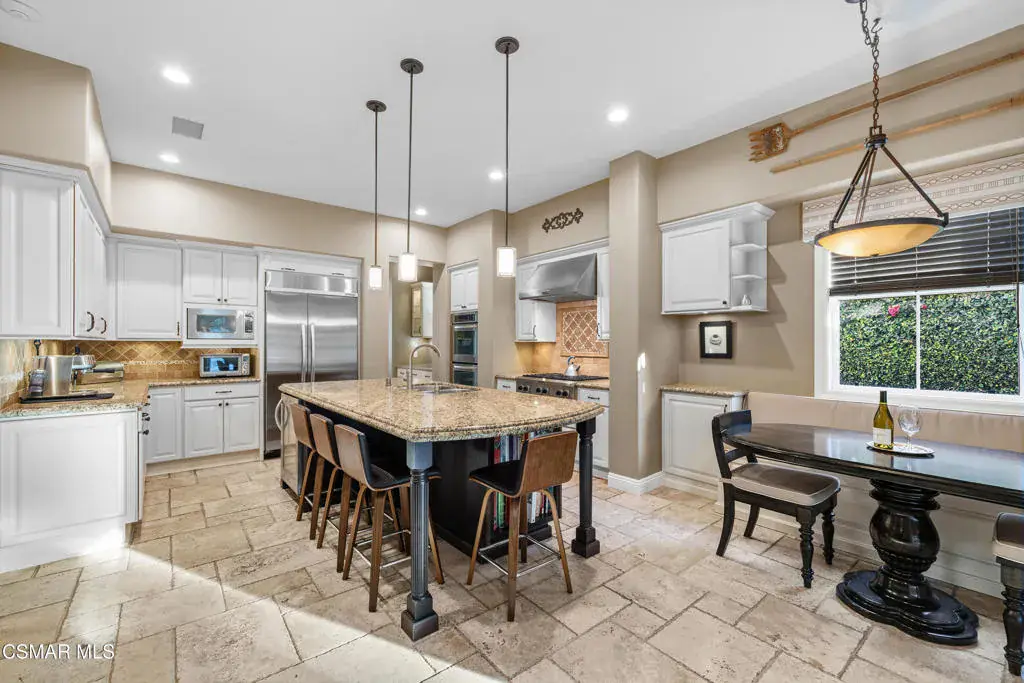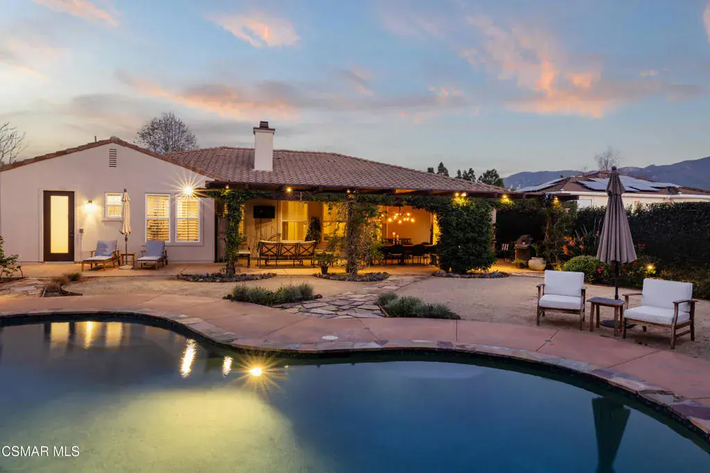 Stunning single-story Spanish-style home located on a private cul-de-sac in the exclusive gated community of Virazon. Situated on a premium corner lot spanning approximately 13,000 square feet, this residence offers exceptional privacy with 4 bedrooms, 3 bathrooms, and over 3,000 sq ft of open, light-filled living space with soaring ceilings.The gourmet kitchen features granite countertops, custom cabinetry, a large center island, stainless steel appliances, and a butler’s pantry. The inviting living room includes a fireplace and built-in wall unit, ideal for entertaining.Enjoy a private backyard oasis with pool, spa, large covered patio for indoor/outdoor living, and breathtaking panoramic views of Mount Boney and the Santa Monica Mountains. Additional highlights include low-maintenance Spanish-style landscaping and a three-car garage with plenty of built-in storage.