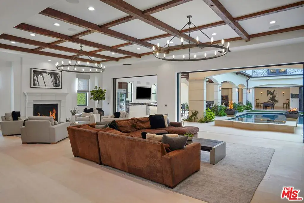This private estate boasts impeccable craftsmanship and design on more than half an acre of flat land. Set behind private gates, this compound-like residence offers more than 18,200 sq. ft. of living space (including a 3,500 sq. ft., 11-car garage), five en-suite bedrooms, 10 baths, a soundproof home theater with memory foam carpet, a game room, office, wine cellar, an attached guest house with private entry, a spacious home gym, and much more. No expense was spared in this refined custom home, featuring premium finishes throughout, including limestone flooring, 12-ft. wood-beam ceilings, and palatial corridors. The gourmet kitchen is replete with state-of-the-art appliances, leathered granite countertops, a butler’s pantry, and two kitchen islands with scratch- and stain-resistant Kedra countertops. The resort-style backyard showcases a pool/spa, outdoor shower, and a massive loggia with lounge areas, a bar, and a 1,500 sq. ft. covered outdoor kitchen featuring a built-in BBQ with a rotisserie, warming drawer, oversized glass refrigerator, nugget ice machine, and more. The 1,300 sq. ft. primary suite occupies its own wing, featuring an office or nursery space, a boutique-style walk-in closet, a spa bathroom, and a fireplace. Conveniently located on the upper level is a full-sized laundry room with dual washer and dryer units and a dog washing station; a third laundry set is situated in the lower-level butler’s pantry. The entire main house is wired to a generator for power outages and is equipped with a Falsken water filtration system. It features built-in audio and an extensive video surveillance and monitoring system. This exclusive address offers a rare opportunity for those seeking privacy, opulence, and space, just minutes from the best destinations in Newport Beach.