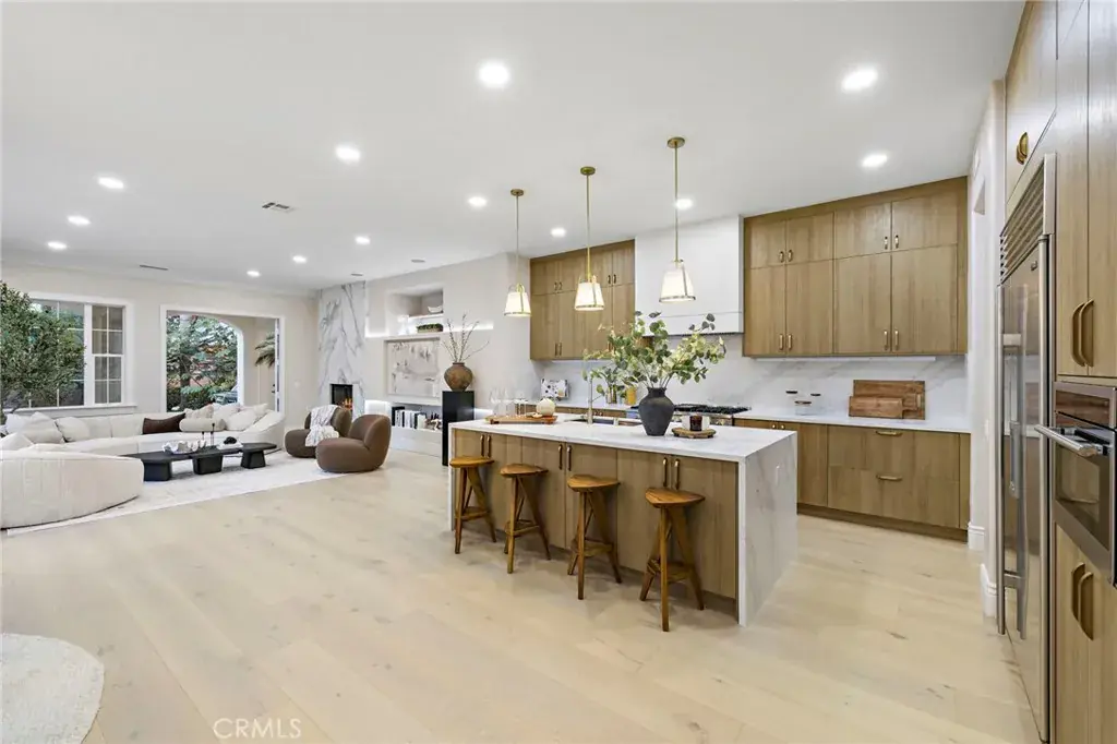 This elegant home features 5 spacious bedrooms, including a private casita with a separate entrance, and 5.5 bathrooms. The formal living and dining rooms provide generous entertaining space, while the expansive family room opens seamlessly to a gourmet kitchen designed for both daily living and hosting. Wine enthusiasts will appreciate the built-in Sub-Zero wine storage.