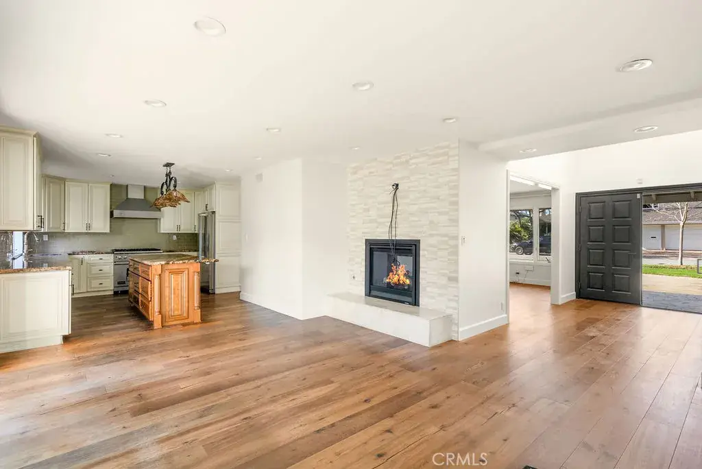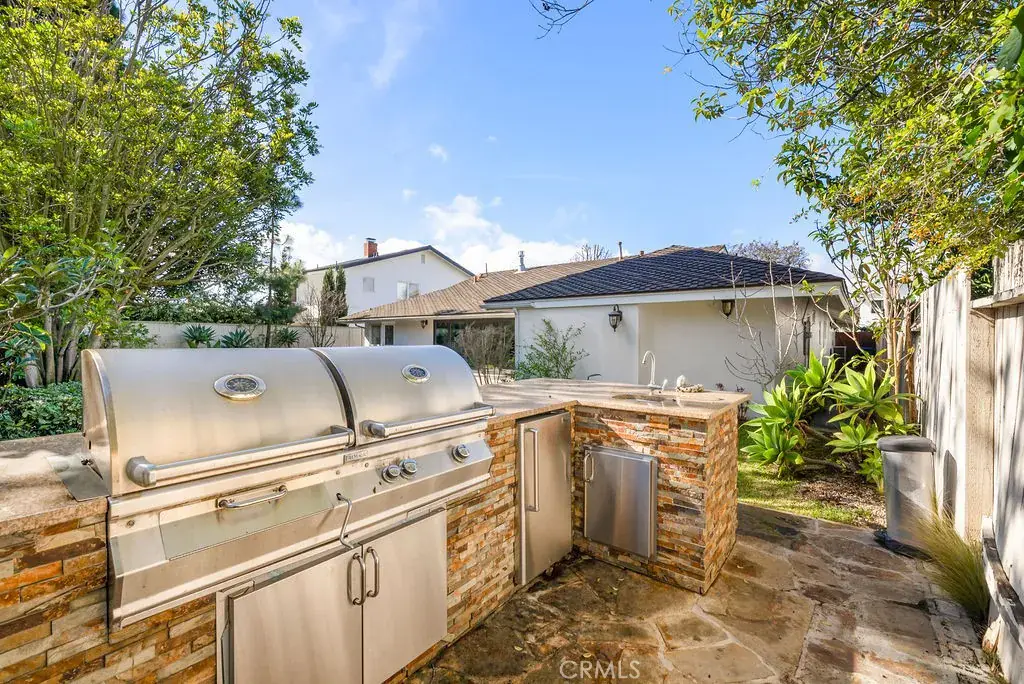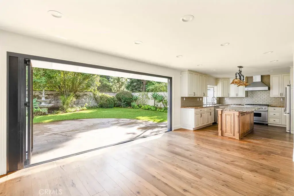 Inside, enjoy sun-filled living spaces with rich wood floors and freshly painted interiors. The remodeled kitchen features modern finishes, high-end appliances, and ample storage, perfect for cooking and entertaining. The living room opens through folding doors to a fully equipped backyard, complete with a BBQ and outdoor kitchen, creating seamless indoor-outdoor living for gatherings, relaxation, or dining al fresco. The upgraded master bathroom includes modern fixtures and thoughtful design.