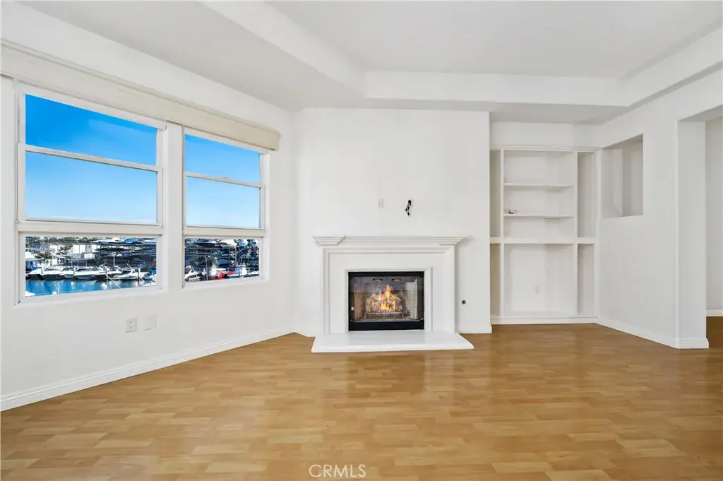 Embodying the idyllic California coastal lifestyle, this stunning waterfront residence is located within the gated and highly sought-after 28th Street Marina community in Newport Beach. Meticulously designed, the light-filled open floor plan flows seamlessly from room to room. Upon entry, high ceilings greet you and beautiful wood flooring, set an immediate tone of warmth that this home easily exudes. The chef’s kitchen is thoughtfully positioned at the heart of the home and features stainless steel appliances, including a double oven, generous counter space, and a spacious breakfast nook. Adjacent to the kitchen, the formal dining area opens to the inviting family room, highlighted by an elegant fireplace and oversized windows that flood the space with natural light. Step onto the private balcony where you will enjoy dramatic peninsula views, accessible directly from both the living room and the primary suite. The primary retreat offers serene water views and the master bath is complete with dual sinks, a jetted soaking tub, walk-in shower, and an expansive walk-in closet. The perfectly placed secondary bedroom is privately situated and accompanied by a nearby full bath. Additional features include in-unit laundry with washer and dryer, recessed lighting, fitted shutters, central air conditioning, and two assigned subterranean gated parking spaces, along with ample guest parking. A private elevator delivers you just steps from your front door—no stairs required. Ideally located near premier shopping, dining, and all that Newport Beach has to offer, this exceptional home truly has it all!