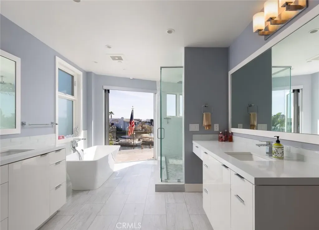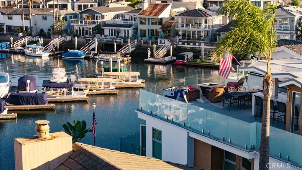 Set within the exclusive, guard-gated enclave of Balboa Coves—one of just 68 residences—this exceptional bayfront home offers a refined coastal lifestyle with unobstructed water views. Enjoy direct access to your own sandy beach and a private dock accommodating a 35-foot boat, all just moments from the best of Newport Beach. An elevator services all three levels, creating effortless flow throughout the home. The main level features an open-concept great room with wide-plank French oak floors, a sleek fireplace, and accordion doors that open to the waterfront, blending indoor and outdoor living. The chef’s kitchen is beautifully appointed with a Wolf range, Sub-Zero refrigerator, Bosch dishwasher, wine refrigerator, walk-in pantry, and a generous island ideal for entertaining. A waterside dining area, en-suite guest bedroom, and powder room complete this level. Upstairs, the primary suite is a serene retreat with sweeping bay views, a private balcony, and a spa-inspired bathroom featuring a freestanding soaking tub, glass-enclosed shower, dual vanities, and a custom walk-in closet. Two additional en-suite bedrooms and a laundry room complete the second level. The expansive rooftop deck spans over 1,000 square feet and is designed for entertaining, featuring a fully built-out rooftop kitchen with commercial-grade equipment, panoramic bay views, and elevator access—perfect for hosting under the stars. An additional bedroom with a bathroom on the roof-deck provides versatility as a bedroom, gym, or an office. Enhanced by smart-home automation, an oversized two-car garage with a built-in, air-conditioned office, a private community park, and ample guest parking. Ideally located near Lido Marina Village, Fashion Island, and world-class golf, this is coastal living at its finest.