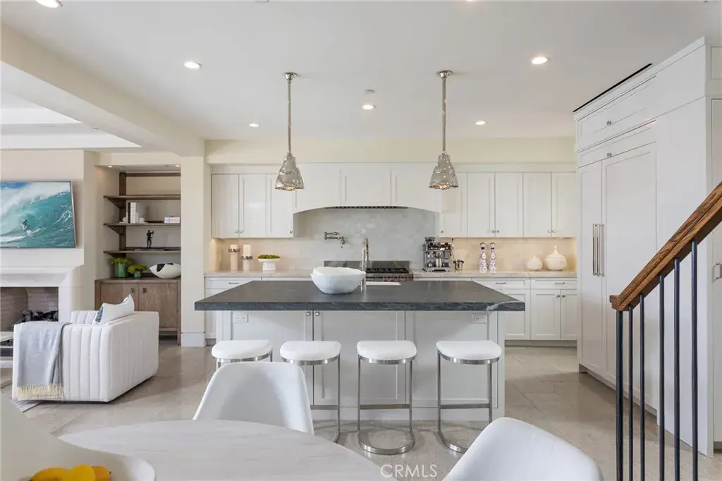 An exquisite Balboa Island residence poised to deliver the very best of Newport Beach living. Set within the coveted “Little Island,” this pristine waterfront oasis offers 30’ of frontage and a private dock accommodating a vessel up to 18’. Swoon-worthy interiors by renowned designer Michael Smith span approximately 2,181 square feet over three levels and incorporate stylish touches such as hand-carved fireplace mantels, bespoke draperies, custom window treatments, wall coverings, and designer faucets/fixtures throughout. Anchored by a custom fireplace, the open-plan living area is accoutered with beamed ceilings, accordion glass doors, stone flooring, built-in shelving, and electric Lutron shades that open to reveal a soothing backdrop of the bay. Outside, entertain and dine al fresco in the heated covered patio made for year-round enjoyment. Tailored to modern tastes, the chef’s kitchen is dressed in stone countertops, subway tile backsplash, white shaker cabinetry, heated floors, and built-in Wolf and Sub-Zero appliances. Rounding out the main level is a breakfast nook, half bath, and 84-bottle wine room with storage racks. A curved wooden staircase rises to the second level where all three generously proportioned en suite bedrooms reside including the opulent fireplace-warmed primary suite equipped with two large walk-in California Closets, spa-like bath outfitted in marble, heated floors, discrete built-in refrigerator, and accordion glass doors that lead to a private wrap-around balcony with heated flooring. Crowning the home on the third floor is an exercise room with an en suite bath and an executive office featuring wood flooring and lighted, built-in display cases and cabinets. Beyond, the view roof deck is the idyllic entertainment venue with covered and uncovered spaces serviced by a kitchenette for easy hosting. Additional highlights include an ELEVATOR servicing all three levels, Control4 AV and lighting system, Hikvision security camera system, Electrolux washer/dryer, TOTO toilet/bidet, electric-powered blinds in living room and primary bedroom, and two-car garage with built-in cabinets/storage. Set near picturesque beaches, shopping, dining, Lido House Hotel, and championship golf courses, in an exclusive waterfront community, the dream comes alive at 308 Grand Canal.