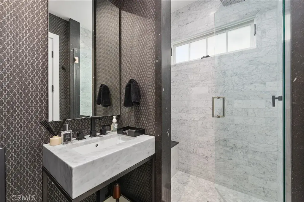 A full bathroom on the ground floor provides easy access from the side of the home—ideal for rinsing off after a beach day. The 2-car garage, accessible from the alley, offers ample storage and includes a “garage fridge.”