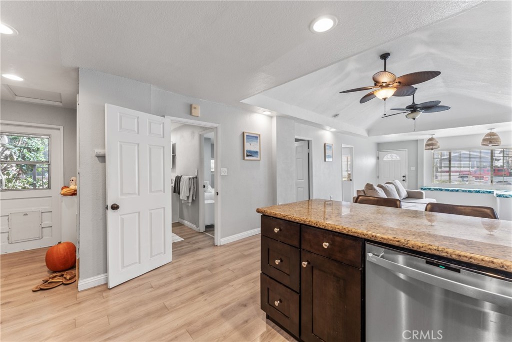 Lower Unit (126 ¼ E Balboa Blvd) – 1 Bedroom | 1 Bathroom. Compact, efficient, and beautifully updated, the lower unit offers a cozy living space and kitchen, with laundry conveniently located in the attached garage.