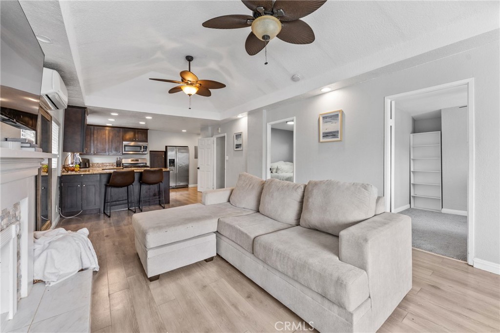 Front House (126 E Balboa Blvd) – 2 Bedrooms | 1 Bathroom | Fireplace. A bright and inviting front home featuring an open living area with fireplace, upgraded kitchen, detached indoor laundry room, and storage area. The property also boasts an **expansive raised front patio—the largest on the block—**perfect for entertaining or maximizing tenant appeal.