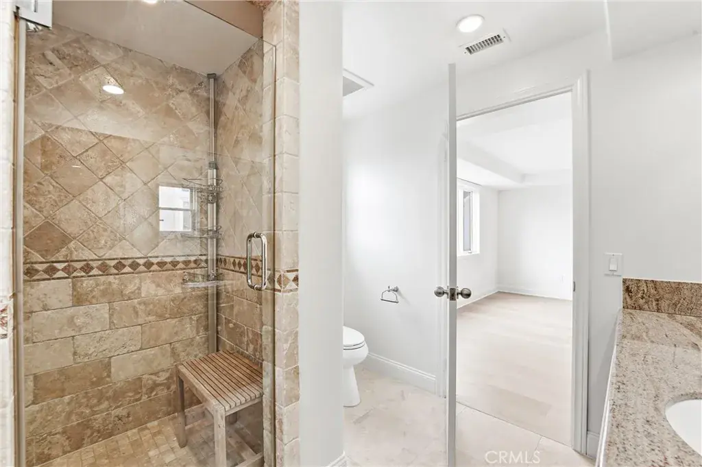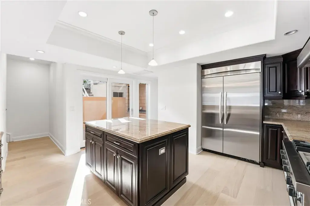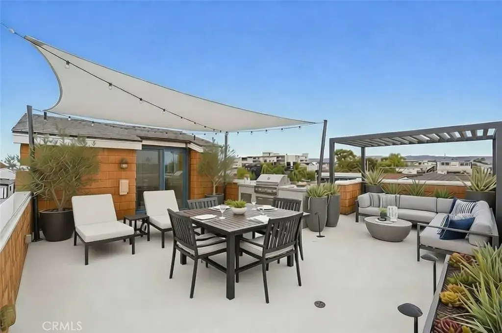 The third level presents a versatile bedroom with an ensuite bath — perfect as a guest suite, office, or bonus space. Expansive sliding glass doors open to a rooftop deck with panoramic views — an entertainer’s paradise for sunning, sunsets, and gatherings. With additional access from exterior stairs, this outdoor haven elevates the home’s indoor outdoor lifestyle.
