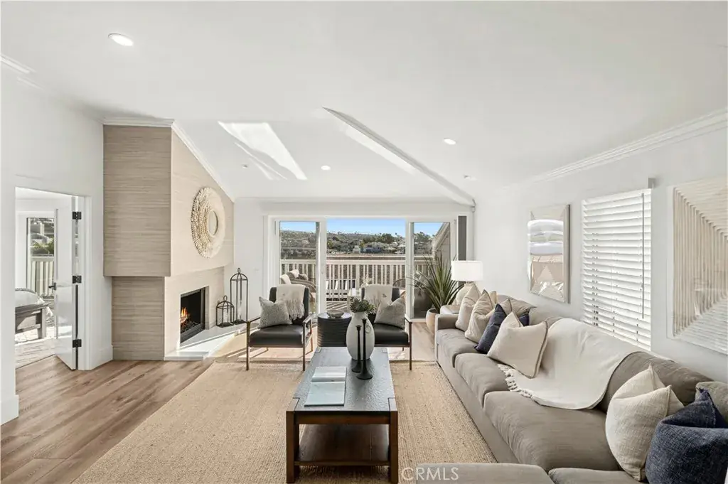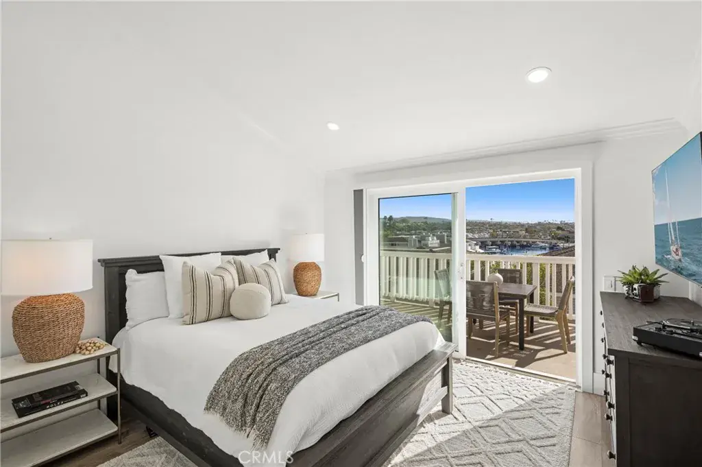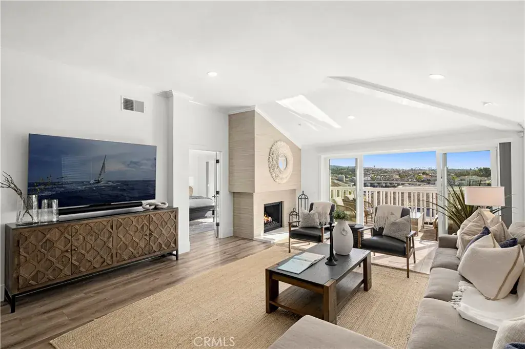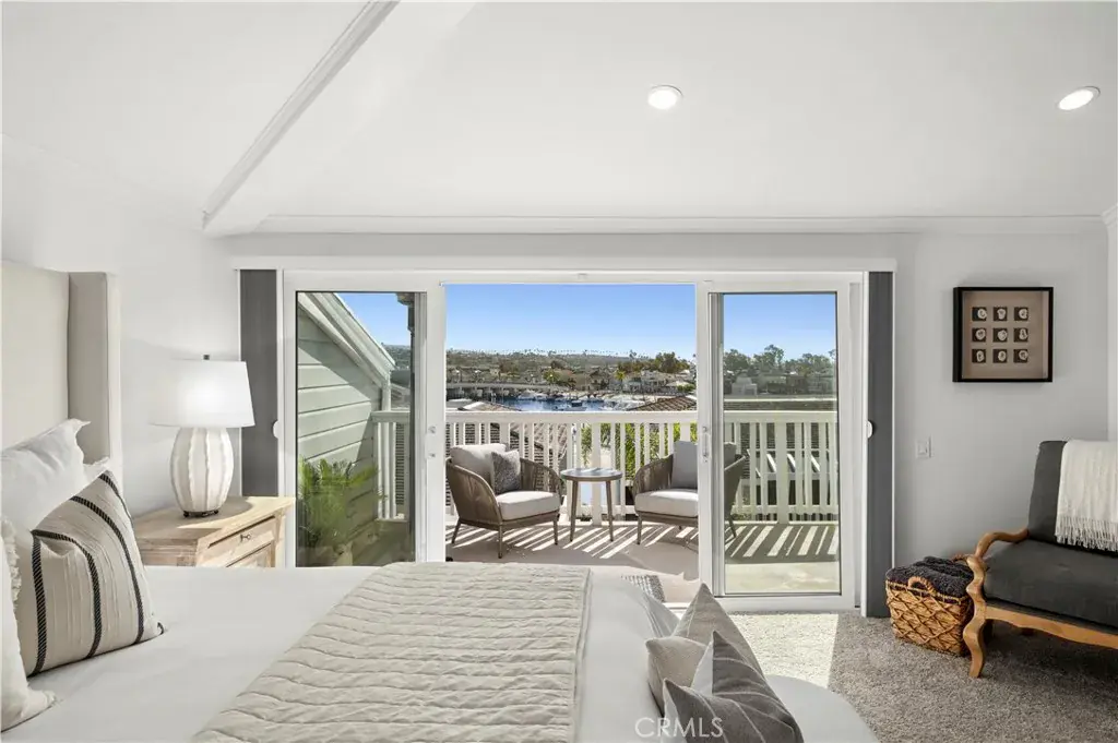 Set along the waterfront in the coveted gated Bayside Cove community, this immaculate, turn-key residence offers the ultimate coastal lifestyle. Light-filled from corner to corner, the 2,180 sq ft home features two bedrooms with a den that was converted into a third bedroom, two-and-a-half baths, and vaulted ceilings throughout. Residents enjoy direct access to a private beach exclusively for Bayside Cove residents, all just steps from the charm and convenience of legendary Balboa Island. The heart of the home is a gourmet kitchen with quartz countertops and a premium appliance suite, including a Sub-Zero refrigerator, Wolf range, and more. The living room, anchored by a fireplace, flows seamlessly to a custom built-in bar with a wine refrigerator, creating a warm and inviting space for everyday living or entertaining guests. Step out onto the large west-facing deck, designed with a dining area and two separate seating areas – perfect for outdoor entertaining or relaxing while taking in captivating views of Beacon Bay, Balboa Island, and Newport Harbor. Sunsets provide a stunning backdrop, and electronic retractable awnings extend the outdoor living space for comfort year-round. Residents enjoy access to a new community private pool and spa, and nearby dock leases for boats up to 41 feet. Located in the heart of Newport Beach, the community offers easy access to grocery shopping, fine dining, Fashion Island, and the Corona del Mar Village. Additional highlights include two-car parking with extensive built-in storage and a detached third-car garage. Furnishings negotiable.