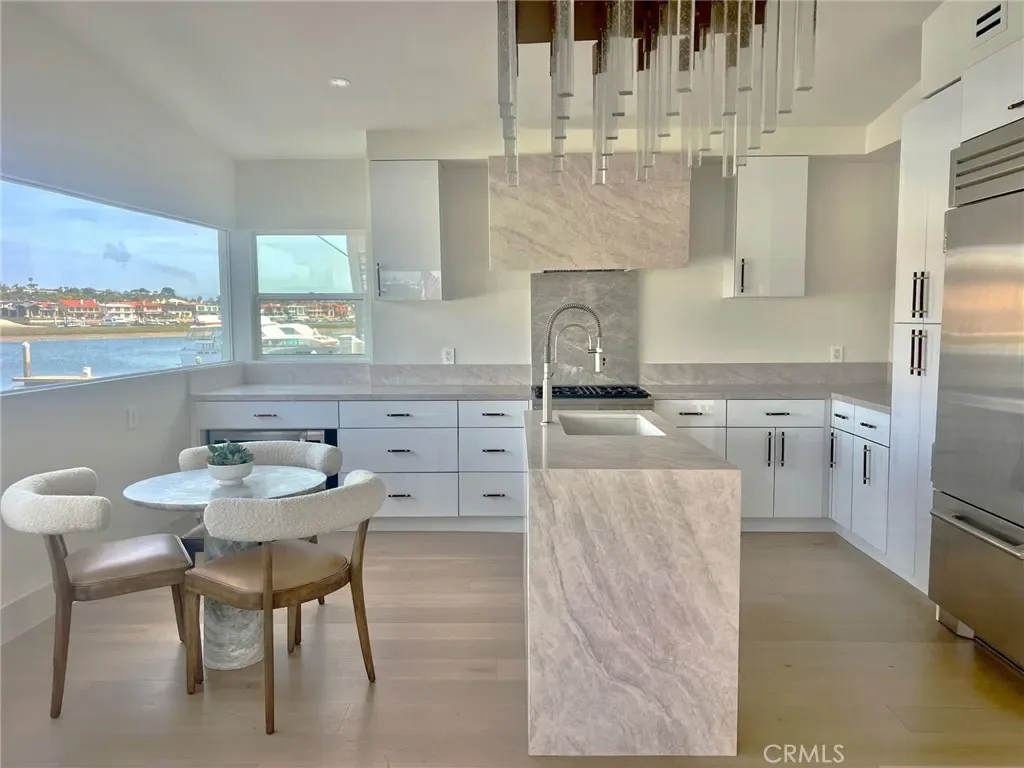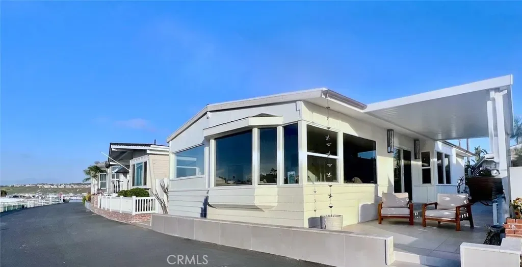WATERFRONT PROPERTY IN NEWPORT BEACH that has been completely remodeled and upgraded throughtout. Rarely on the market this bayfront home in Bayside Village is located directly on Back Bay and captures sweeping water, marina, bay front, bluffs and mountain views and is in the heart of Newport Beach. The property has been recently remodeled with open great room with fireplace, dining area & custom kitchen with a beautiful idland and beautiful cabinets. All havel numerous windows for expansive views. Primary suite has high beamed ceilings plus a large walk in closet and a completely reimagined bathroom with walk in shower plus custom storage. There is a second bedroom with custom storage and remodeled bathroom. Outside is a paritally covered patio deck with stone finishes and open patio area to grab some sun. Behind the home is another space perfect for a garden plus a finished large shed for storage. It also is one of the only 8 homes in Bayside Village with an extra long driveway that can accomodate up to 6 cars. Just steps to the water, private beach, marina and recreational facilities. And just minutes to Balboa Island, Fashion Island and world class beaches. Property is on leased land with favorable lease at $5458.76 monthly. Land lease includes water, trash numerous community amenities including 2 clubhouses, 2 pools/jacuzzis, fitness room, private beach, picnic areas with tables and barbeques plus a dog park! There are no HOA dues or land taxes. Come live the Newport Beach lifestyle at a fraction of the cost of surrounding multi-million dollar home neighborhods