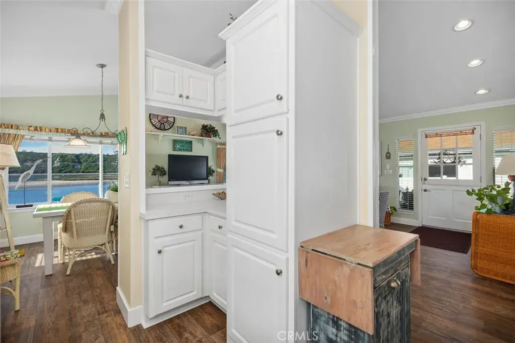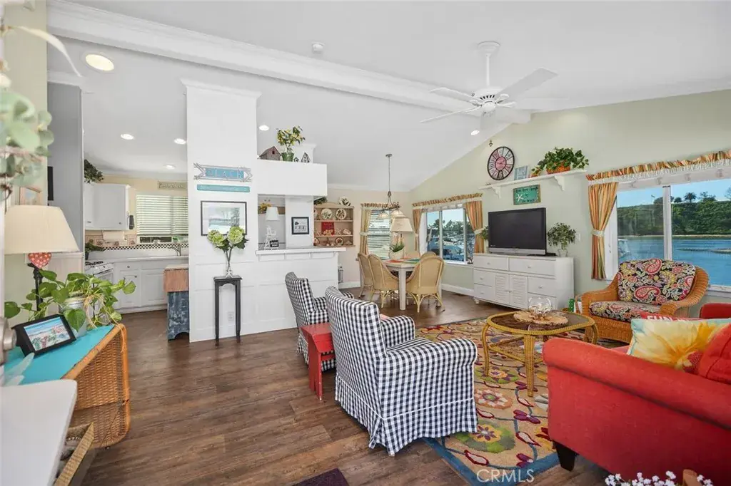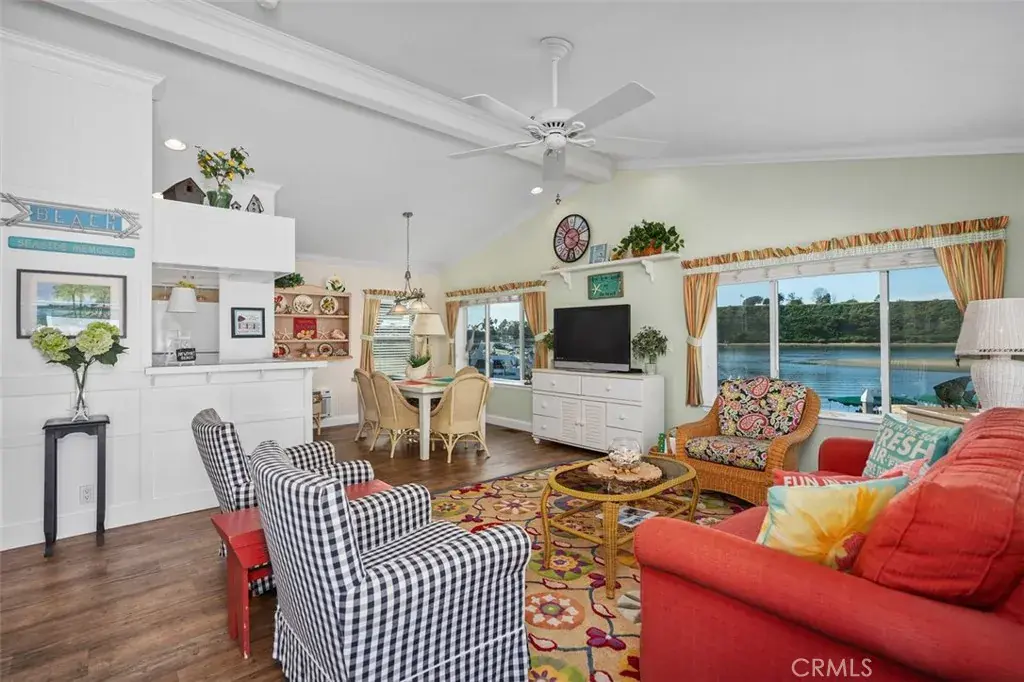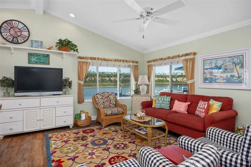 This charming three-bedroom, two-bath waterfront home in the heart of Bayside Village offers the ultimate Back Bay lifestyle in Newport Beach. At approximately 1,152 square feet, this cozy, light-filled home features vaulted ceilings, crown molding, beautiful baseboards, and large windows that frame unobstructed water views stretching toward the coveted Dover Shores neighborhood. Natural light floods every room, with solar tubes brightening hallways and ceiling fans in all bedrooms, keeping the coastal breeze flowing. The spacious kitchen has generous cupboard and pantry space, ideal for everyday living or hosting guests after a sunset cruise. An inside laundry room and two full bathrooms provide practical convenience, while storage sheds and covered parking make beachside life effortless.