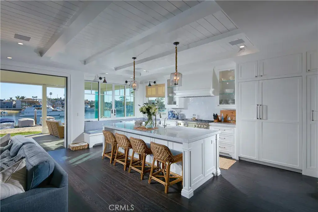 A coastal sanctuary like no other, this extraordinary waterfront estate within the prestigious Beacon Bay community offers a harmonious blend of architectural brilliance and resort-style living. Perched beside a serene sandy bay beach, the home is an impeccable embodiment of the premier coastal lifestyle, seamlessly merging elegance and comfort. Through a welcoming Dutch-door entry, you’re greeted by a sunlit open floor plan adorned with French oak hardwood floors, designer pendant lighting, and intricately crafted crown molding, all exuding timeless sophistication.