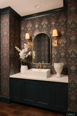 Inside, rich walnut floors, custom millwork, designer lighting, and hand-selected wallpapers create a layered, textural experience that feels both refined and warmly livable. The interiors evoke a curated calm, where organic materials, soft architectural lines, and thoughtful craftsmanship create an ambiance that is both elevated and inviting.