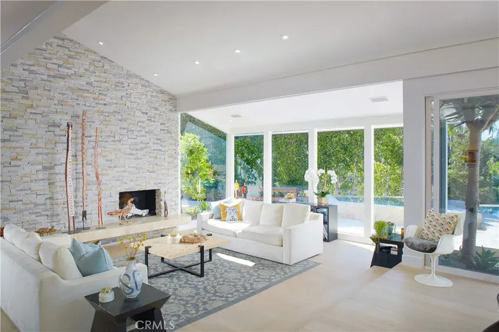 Set within the guard-gated enclave of Big Canyon at the end of a quiet cul-de-sac, this recently remodeled (2025) home impresses with grand proportions and timeless charm. Introduced by a beautifully landscaped front courtyard, the four-bedroom residence offers refined interiors of approximately 4,003 square feet, expansive outdoor spaces, and a coveted position along Big Canyon Country Club’s 6th fairway. Filled with natural light from skylights, the thoughtful floorplan includes a formal sitting room anchored by a stacked-stone fireplace and framed by expansive windows, as well as a separate media lounge. Further along, a glass-enclosed, temperature-controlled 1,800-bottle wine cellar serves as a showpiece for the collector. The chef’s kitchen features Neolith Calacatta Gold countertops, rift white oak cabinetry, 6-burner Wolf range, Sub-Zero Max refrigeration, a Zip Tap for instant boiling/chilled/sparkling water, and a built-in Miele coffee system, flowing seamlessly to both the formal dining area and sprawling backyard. Outside, the setting is designed for year-round entertaining, with an infinity-edge pool and spa, multiple spaces for lounging and dining, and an outdoor kitchen with Viking grill.