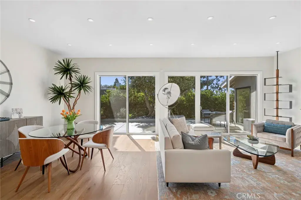 Luxurious single-story modern Dover model is located on a quiet cul-de-sac within the 24-hour guard-gated community of Big Canyon in Newport Beach. Enter the residence through a secure custom etched glass gate to a private front courtyard with porcelain tile, creating an inviting entry. This remodeled 2-bedroom, 2-bath home features engineered white oak flooring, smooth coat walls, updated electrical, recessed lighting, and large windows that provide abundant natural light throughout. The open floor plan includes a living room and dining area that both open to the backyard patio, along with a separate TV or family room filled with natural light, supporting indoor-outdoor living. The kitchen is finished with Carrara marble countertops, stainless steel appliances, a five-burner gas cooktop, a built-in Fulgor Milano coffee machine, and soft-close pull-out cabinet drawers. The oversized primary suite features floor-to-ceiling windows, sliding glass doors to the backyard patio, two closets, including a larger primary closet with ample storage, electric retractable window shades, and west-facing backyard views capturing stunning sunsets. The remodeled primary bathroom includes Carrara marble countertops, a stand-alone soaking tub, a walk-in shower, and dual vanities. The secondary bedroom offers sliding glass doors, retractable window shades, and direct access to the private front courtyard, while the fully remodeled secondary bathroom features Carrara marble countertops, a tub/shower enclosure, and a modern vanity. Additional features include professional hardscape landscaping, a backyard patio designed for outdoor living and entertaining, an attached two-car garage with storage and direct home access, an ADT security system, and updated smart home features. The home offers abundant natural light and a private, serene setting. Living in Big Canyon provides exceptional convenience with close proximity to Fashion Island shopping and dining, South Coast Plaza, Newport Beach coastal beaches, Balboa Peninsula, Crystal Cove State Park hiking trails, nearby golf courses, and community parks, along with quick access to major roads, Pacific Coast Highway, the 55 freeway, and surrounding Newport Beach destinations, making this home ideal for easy commuting and coastal living.