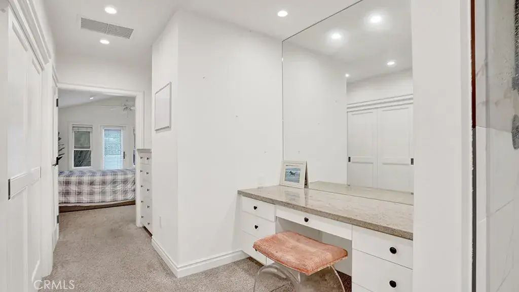 The primary suite includes ample closet space and an updated en-suite bath with custom cabinetry and stone finishes. Additional bedrooms are well-sized and flexible for guests, a home office, or additional living needs.