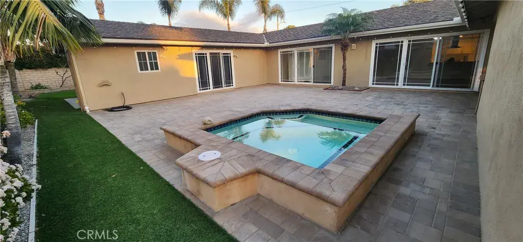 Exterior enhancements completed in 2025 include a brand-new roof, refreshed landscaping, and a redesigned hardscaped courtyard ideal for outdoor entertaining, complete with a private in-ground jacuzzi. A large wraparound grass yard further enhances the home’s exceptional outdoor appeal.