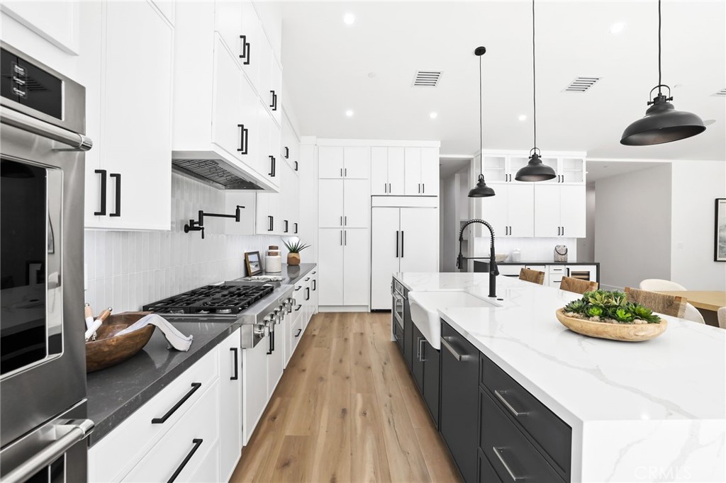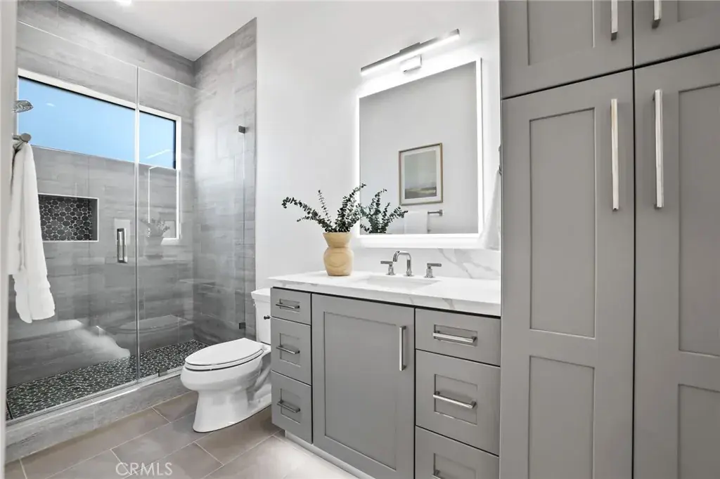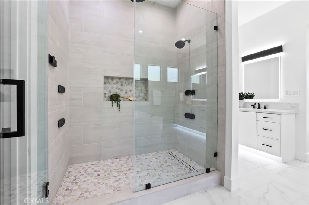 Located in the Coveted Newport Beach neighborhood of Dover Shores this BRAND NEW CONSTRUCTED 2025 Residence is Thoughtfully Curated & Intelligently Designed with a Warm Modern Vibe blending Organic Charm with a Coastal Lifestyle. This completely reimagined Single Story Residence Offers 4 Bedrooms, 4.5 Bathrooms, MASSIVE 3 CAR GARAGE, and a Multi Use Creative Nook. The Attention to Detail & Quintessential California Cool Aesthetic are immediately noticed upon entry through the Oversized 9ft Dutch Door. Creating an iconic California indoor-outdoor flow Paradise is found in the heart of the home. The Great Room encompasses 20′ Slider, Vaulted Ceilings, Custom Woodwork Feature Walls, Surround Sound Speakers & Subwoofers, and Fireplace. Cohesively Blending into the Coastal Quiet Luxury Aesthetic of the home is the Entertainers Dream Kitchen, with an Abundance of Floor to Ceiling Cabinets, 48” Commercial Grade Gas Range w/ Custom Hood, Built in 48” Refrigerator, Built in Double Oven, Waterfall Quartz Island, Neutral Artisanal Mosaic Tile, & a Custom Bar Nook w/ Ice Maker & Wine Fridge. The Intelligent Design of this home is highlighted by the subtle hidden entrance to your Primary Suite Retreat. The Primary Suite Retreat will leave you well rested & calm with the coastal breeze coming through the 8.5’ Pocket Slider & into the Spa Like Primary Bathroom featuring a Restorative Shower Digitally Controlled 2 Rain Heads & 4 Body Sprays, Whirlpool Tub, Designer Tile and Spacious Custom Walk In Closet. Away from the Primary, the left Wing of the house features 3 En Suite Bedrooms all Curated with Cohesive Modern Designer Details, and an Office. The Peaceful, Private and Professionally Landscaped Backyard features Multiple Seating Areas, Turff, Built In BBQ Island & Grill, & the Custom Stone Artisanal Fire Pit. Additional Modern Day Upgrades include Modern Metal Roof, 2 TESLA POWER WALLS, SOLAR, Halo 5 complete Water Filtration System, Tankless Water Heater, Sound Deadening Insulation, Cat6 & Hardwired Wi-Fi extenders. Do not forget The Masterfully Designed, MASSIVE 823sqft 3 CAR GARAGE complete w/ Epoxy Flooring. Incredible Home…Come see this one in person!