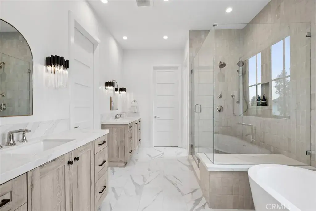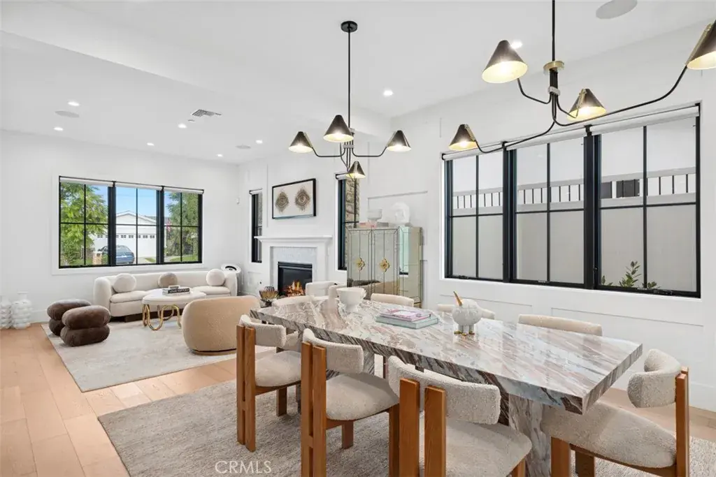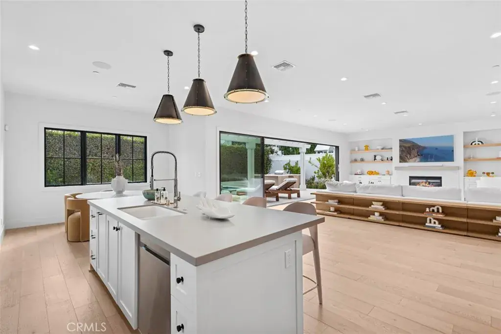 Completed in 2024, this residence in the Highlands of Dover Shores captures the ease of modern Newport Beach living with a clean architectural sensibility and a focus on light, scale, and livability. High ceilings and an open-plan design establish a sense of volume from the moment you enter, while carefully selected materials keep the spaces warm and grounded. Throughout the home, natural materials, wide-plank flooring, and soft modern finishes create a calm, cohesive aesthetic that feels both current and timeless. The main level is designed for both flow and function, with expansive living and dining areas sit adjacent to a striking kitchen featuring custom cabinetry, an oversized island, and integrated appliances. Large scale windows and sliding wall-to-wall doors dissolve the boundary between indoors and out, opening to a newly completed backyard designed for everyday enjoyment and entertaining alike. A brand new pool and spa, built-in barbecue, and covered lounge areas surrounded by mature hedges create a relaxed, resort-like atmosphere with privacy to match. A bedroom suite on the main level adds flexibility ideal for guests, extended family, or a dedicated work-from-home space. Upstairs, the primary suite serves as a quiet retreat- complete with a spa-inspired bath with stand-alone tub and considerable dual walk-in closets- generous proportions, and thoughtful design moments that serve to elevate every day life. Three additional en-suite bedrooms ensure comfort and privacy, while a bonus loft provides a versatile space ideal for a media room, homework zone, or casual lounge. Set in one of Newport Beach’s most desirable neighborhoods, Dover Shores is prized for its ocean-close lifestyle, and proximity to top-rated schools, scenic Back Bay trails, and world-class dining and shopping.