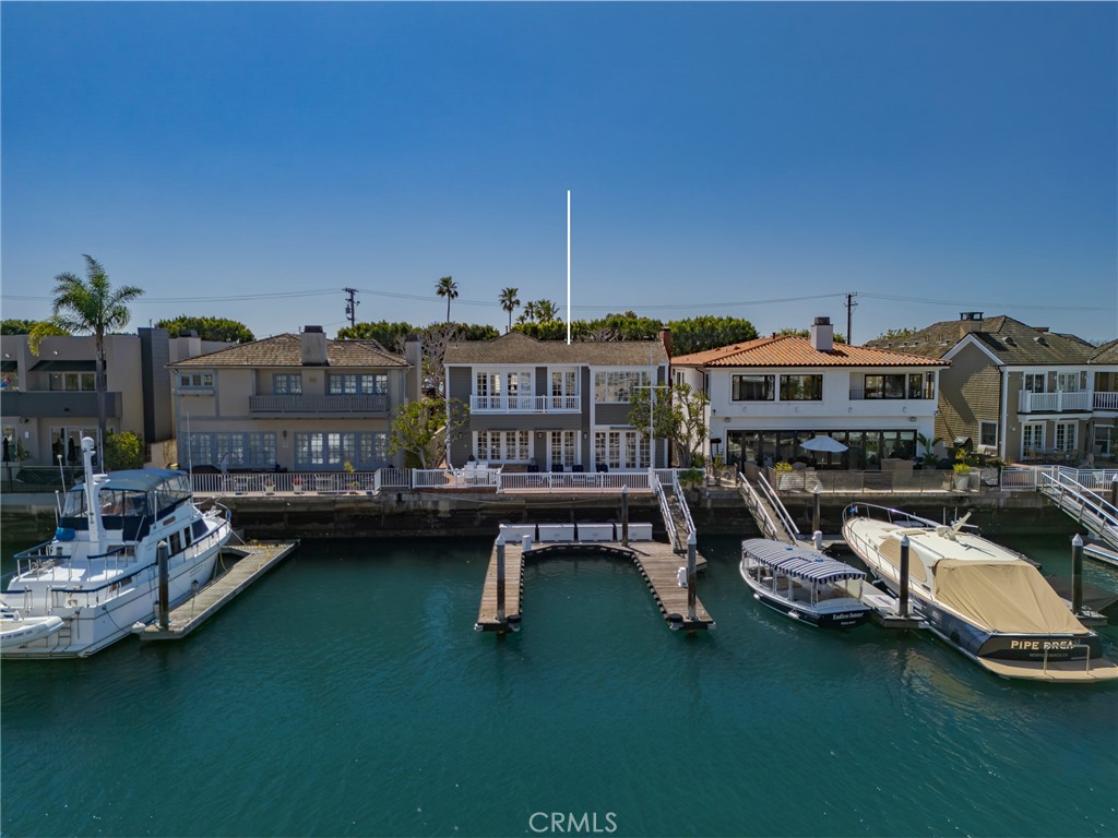 Located on Harbor Island Drive in Newport Beach along the edge of Promontory Bay, this exceptional bayfront residence offers five bedrooms, four bathrooms, and approximately 50 feet of prime waterfront frontage with a private dock featuring three slips and a premium Brazilian hardwood surface.