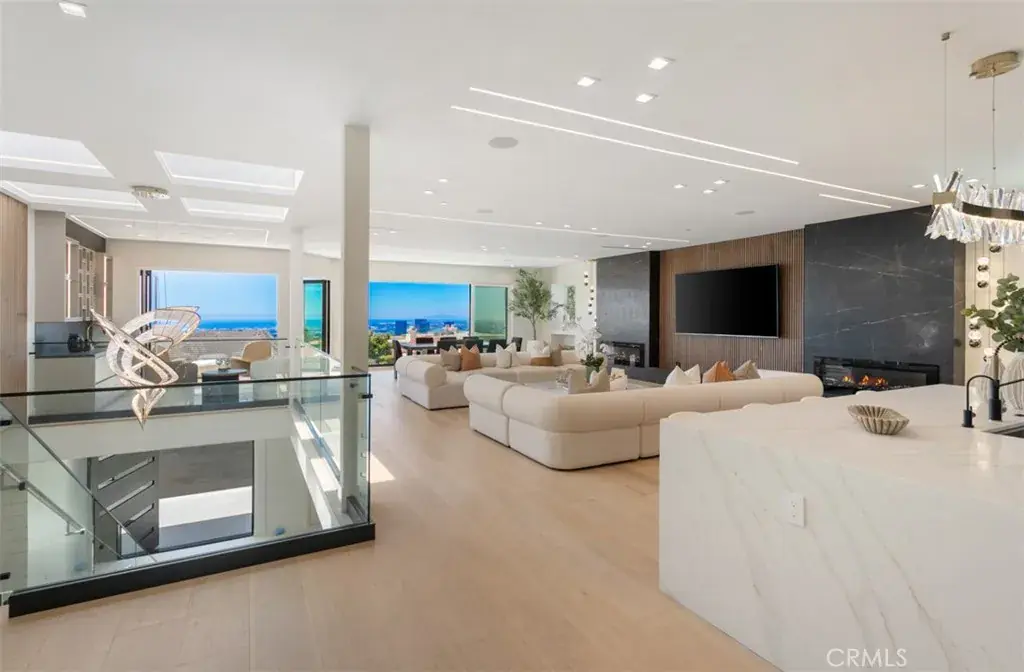 Perched at the end of a quiet cul-de-sac within the exclusive guard-gated enclave of Harbor Ridge, 4 Narbonne is a stunning showcase of design, function, and luxury. Completely reimagined, this architectural gem blends striking modern aesthetics with a warm, inviting ambiance—perfectly tailored for entertaining and everyday living. Beyond a private entry gate and custom oversized front door, you’re welcomed into a dramatic open-concept layout filled with natural light, curated finishes, and an effortless indoor-outdoor flow. The main level offers three spacious bedrooms, including a junior primary suite with ocean views, and two secondary bedrooms that overlook a serene water feature. A sleek lounge with a fireplace, bar, and media wall adds to the home’s entertainer appeal. Take the elevator upstairs, where panoramic views span the Pacific Ocean, Catalina Island, Newport Harbor, and city lights that stretch to downtown LA. Designed for both grandeur and comfort, this level features two additional bedrooms—one currently used as a home office with its own balcony—as well as a show-stopping primary suite wrapped in floor-to-ceiling glass. The spa-like bathroom and boutique-style closet complete the experience. The heart of the home includes both a front-facing designer kitchen and a full secondary prep kitchen, flanked by a breakfast nook, formal dining area, double fireplaces, and walls of sliding and bi-folding doors that dissolve the line between indoors and out. Step into your own private resort: a spectacular outdoor oasis with a pool, spa, dry sauna, multiple waterfalls, a BBQ island, fire table, and ample lounge and dining areas—designed to impress and built to entertain. With every box checked—guard-gated security, panoramic views, stunning finishes, and true turnkey luxury—this is coastal living at its finest.